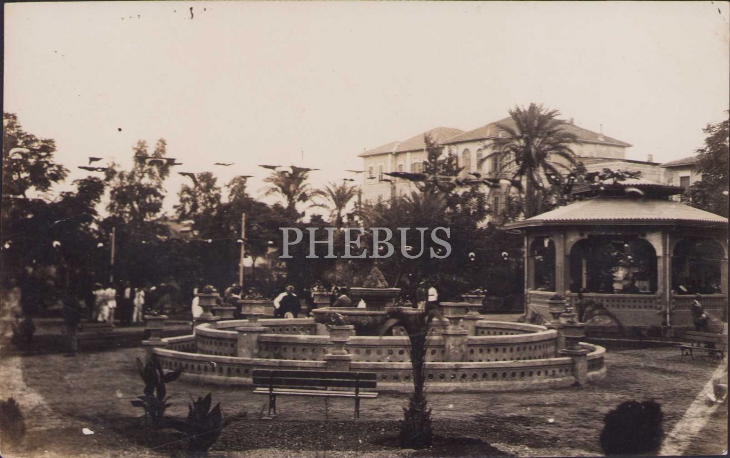 Çardaklı ve havuzlu bir meydan.