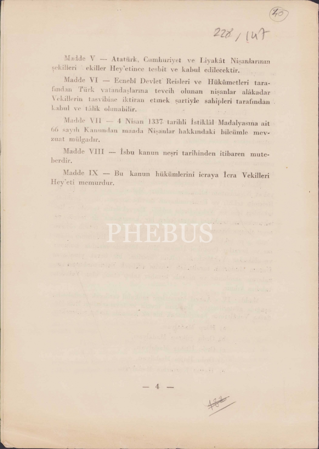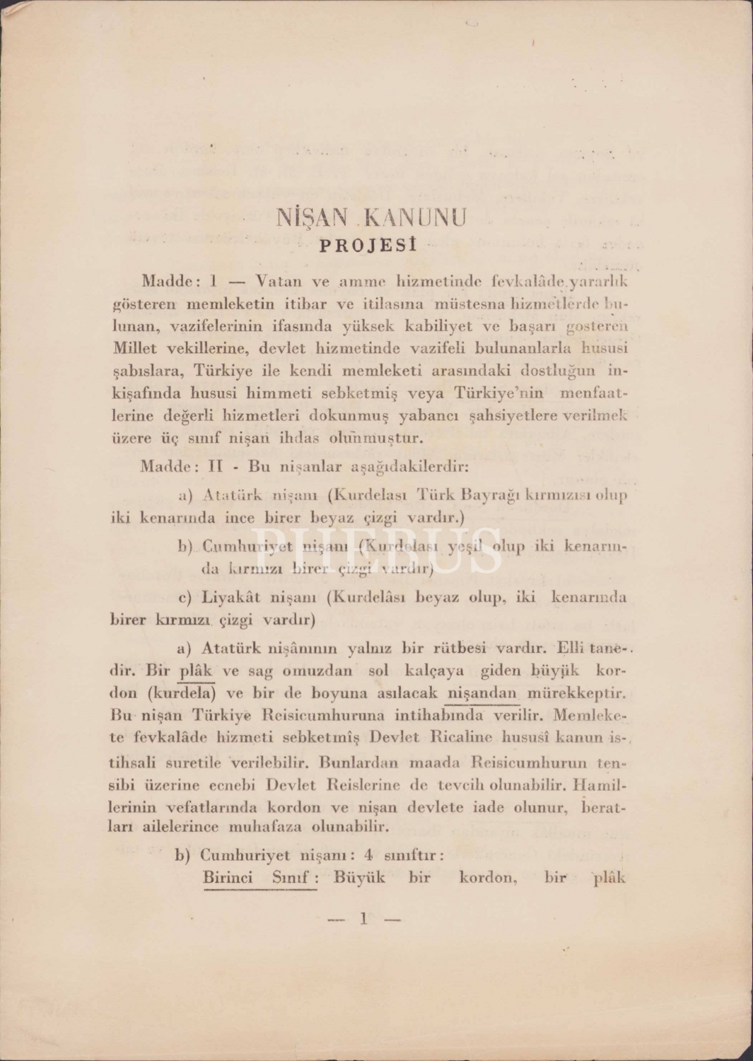 Nişan Kanunu Projesi, 4 sayfa, 17x24 cm.