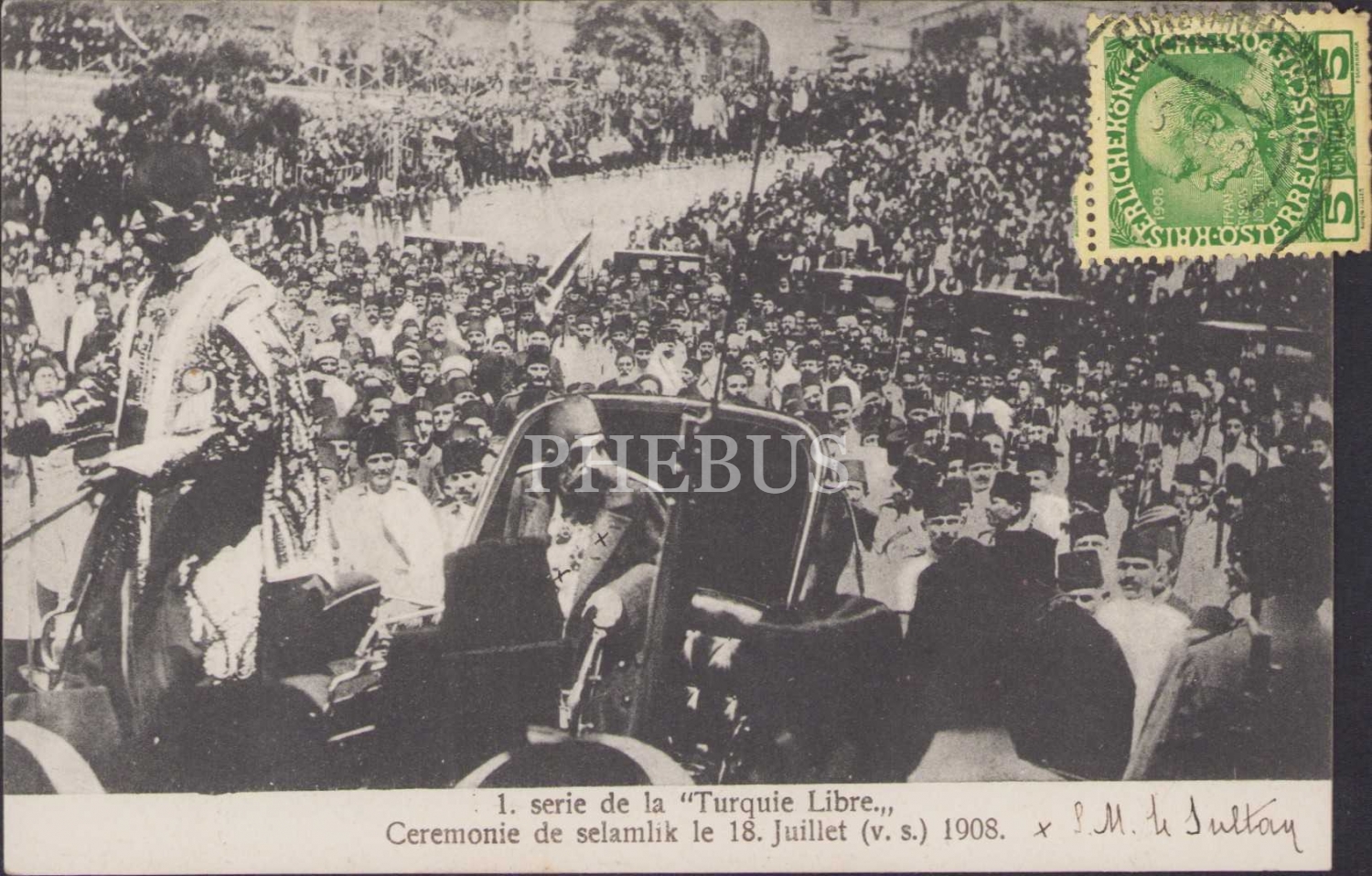 Osmanlı dönemi kartpostal, Sultan İkinci Abdülhamid Selamlık Merasimi, Almanca pullu.