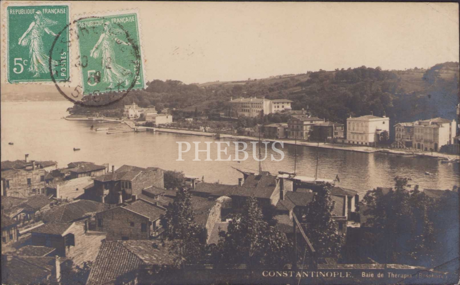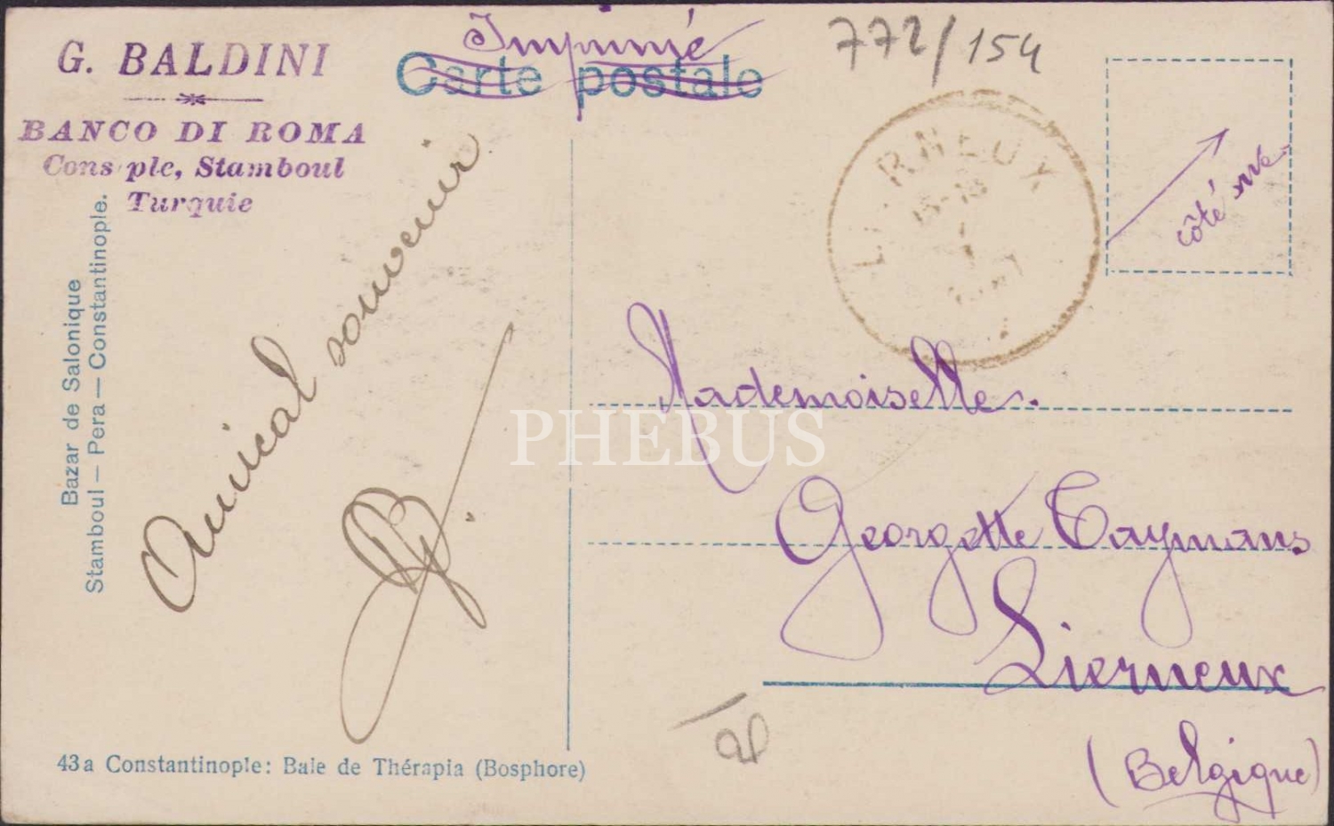 Osmanlı dönemi kartpostal, İstanbul Boğazı, damgalı ve pullu, G. Baldini damgalı.
