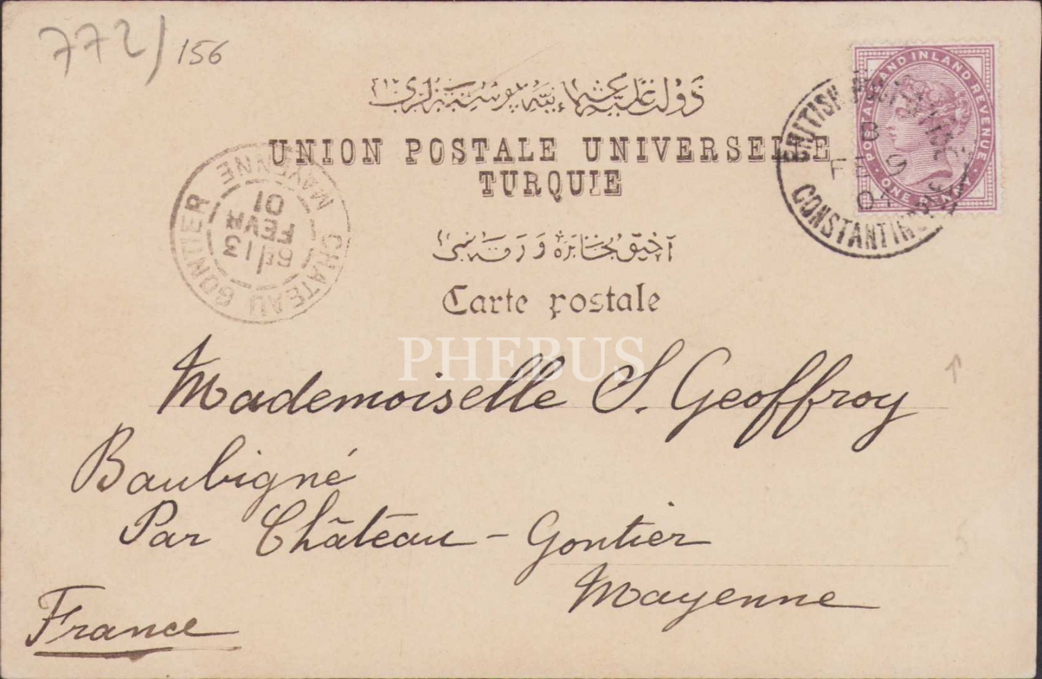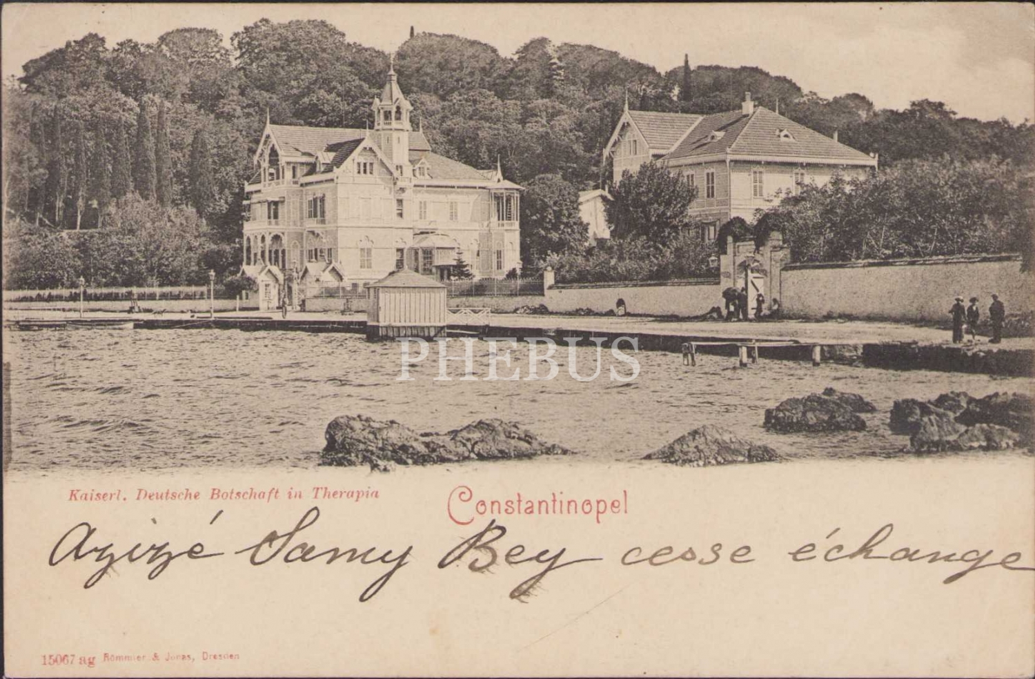 Kaiserl, Deutche Botschaft in Therapia, Constantinopel, arkası Fransızca ithaflı, Aziz Sami Bey'e Franszıca ithaflı, Constantinople damgalı.