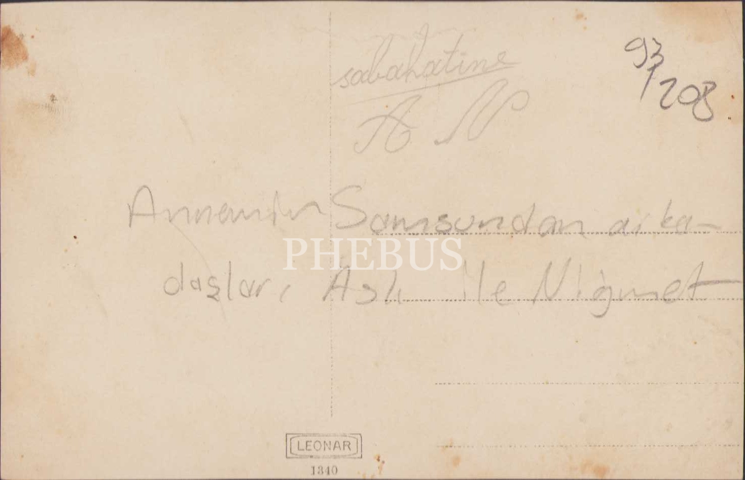 Erken dönem fotoğraf, Samsun'dan Aslı ve Nimet Hanımlar, Foto Hakkı Samsun soğuk damgalı, arkası ithaflı,7,5x12 cm.