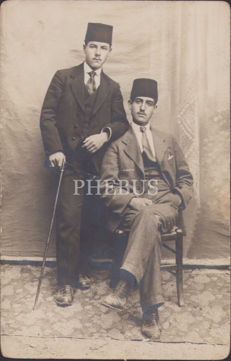 Erken dönem fesli öğretmenler, arkası Osmanlıca 'Unutulmaz bir hatıra' şeklinde ithaflı, Kütahya, 1322 tarihli, 9x14 cm.