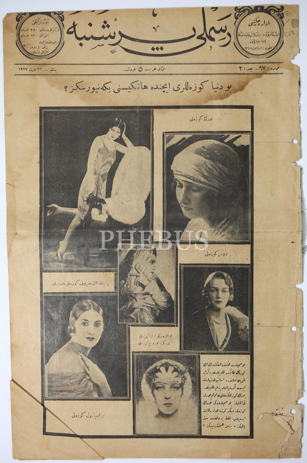 Osmanlıca Resimli Perşembe, Kapak: Bu Dünya Güzellerinden Hangisini Beğenirdiniz?, 31 Mart 1927 tarihli, haliyle, 8 sayfa, 30,5x44,5 cm.