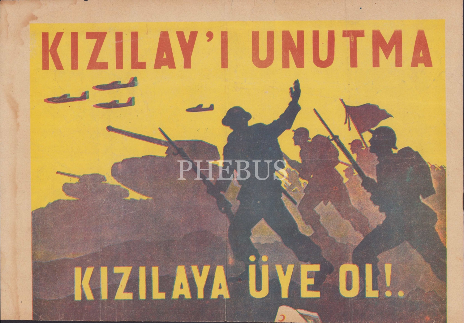 Kızılay'ı Unutma Kızılay'a Üye Ol yazılı yarım afiş(kesik), arkası Osmanlıca, 43x30 cm.