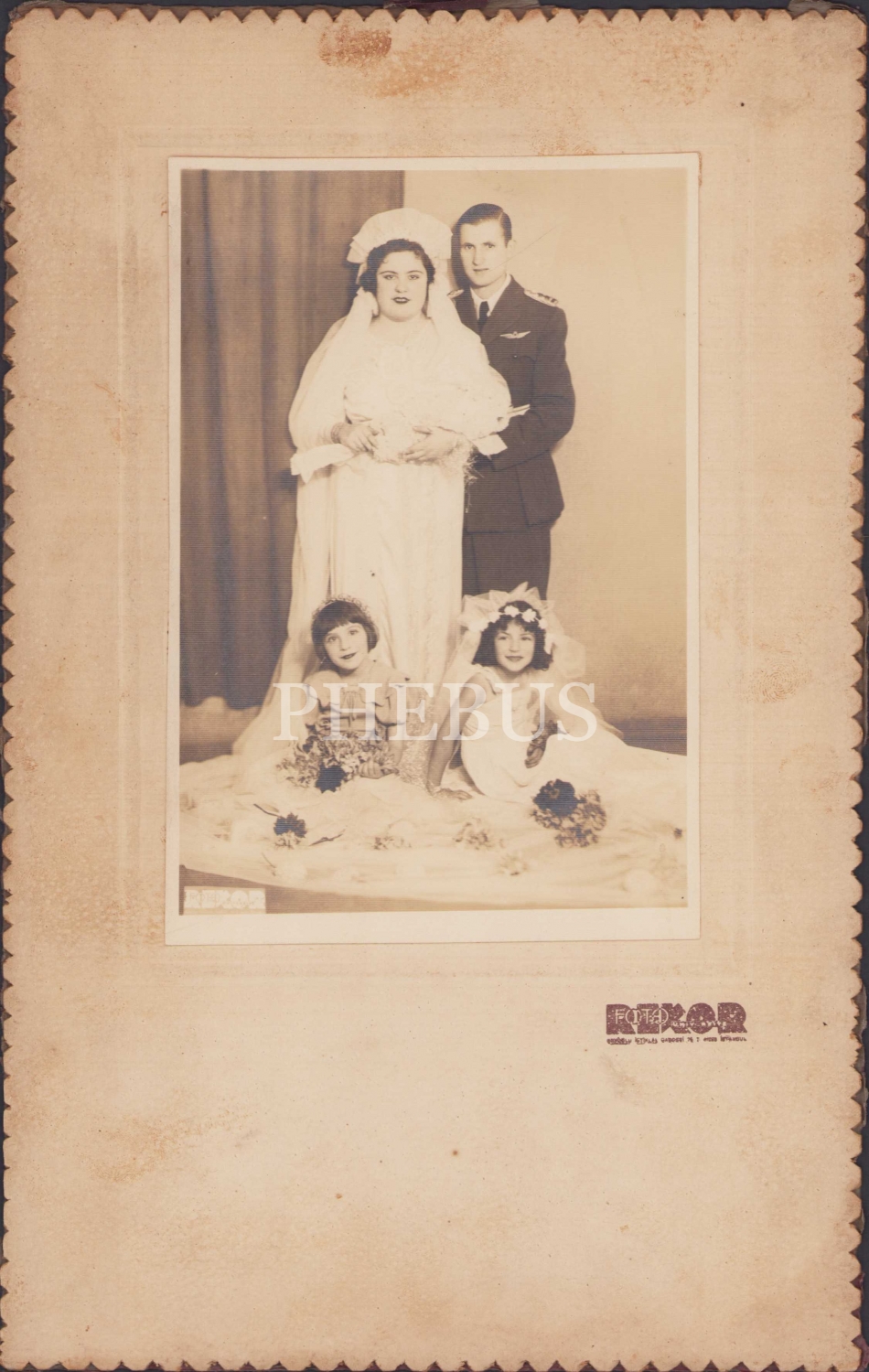 Erken dönem asker damat ve gelin fotoğrafı, Foto Dekor, İstanbul, 11,5x16,5 cm.