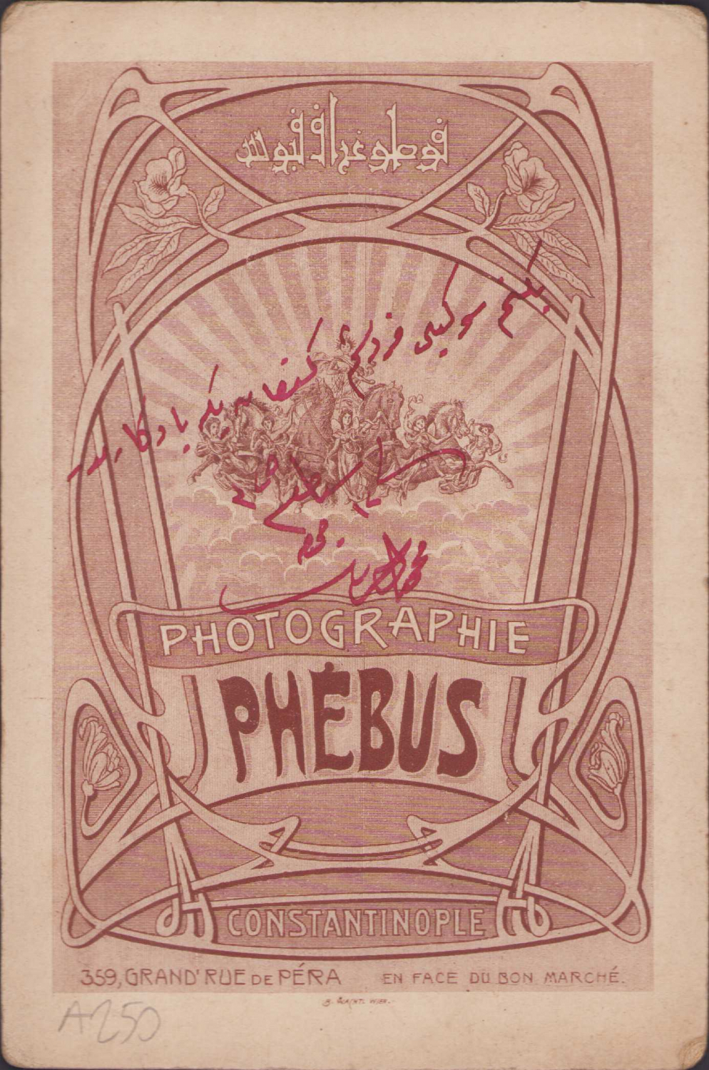 Mahmut bey, Foto Phebus kabin fotoğrafı, arka yüzü osmanlıca atıflı, 1907 tarihli, Constantinople