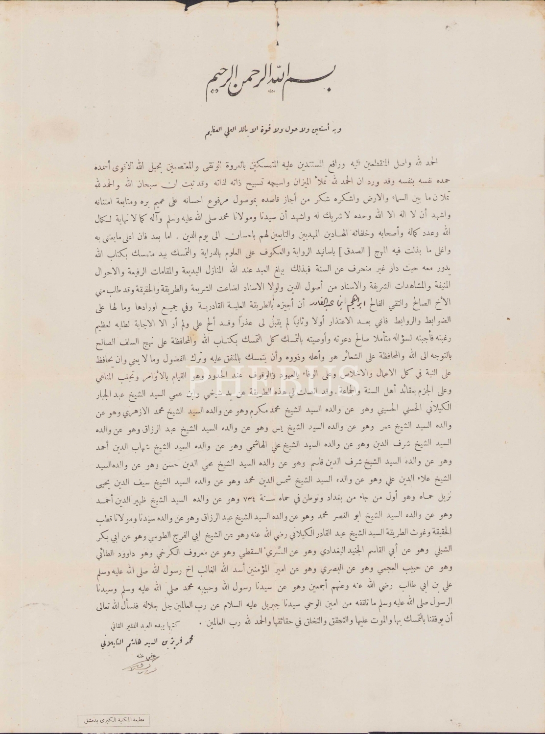 Kadiri Tarikati ile ilgili Arapça belge, 31x41 cm