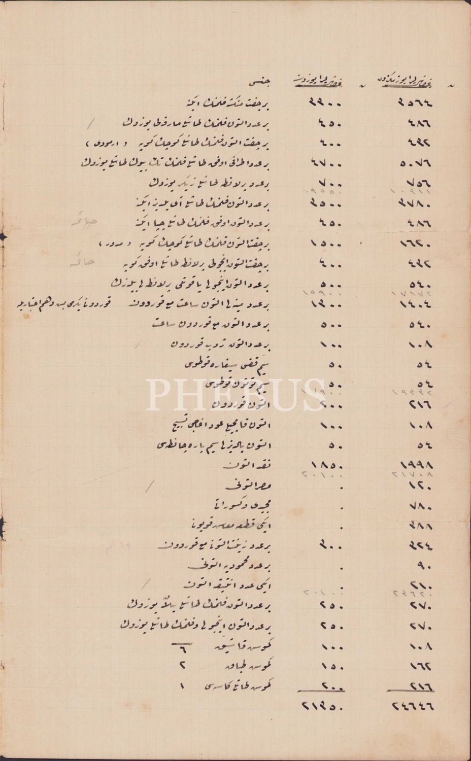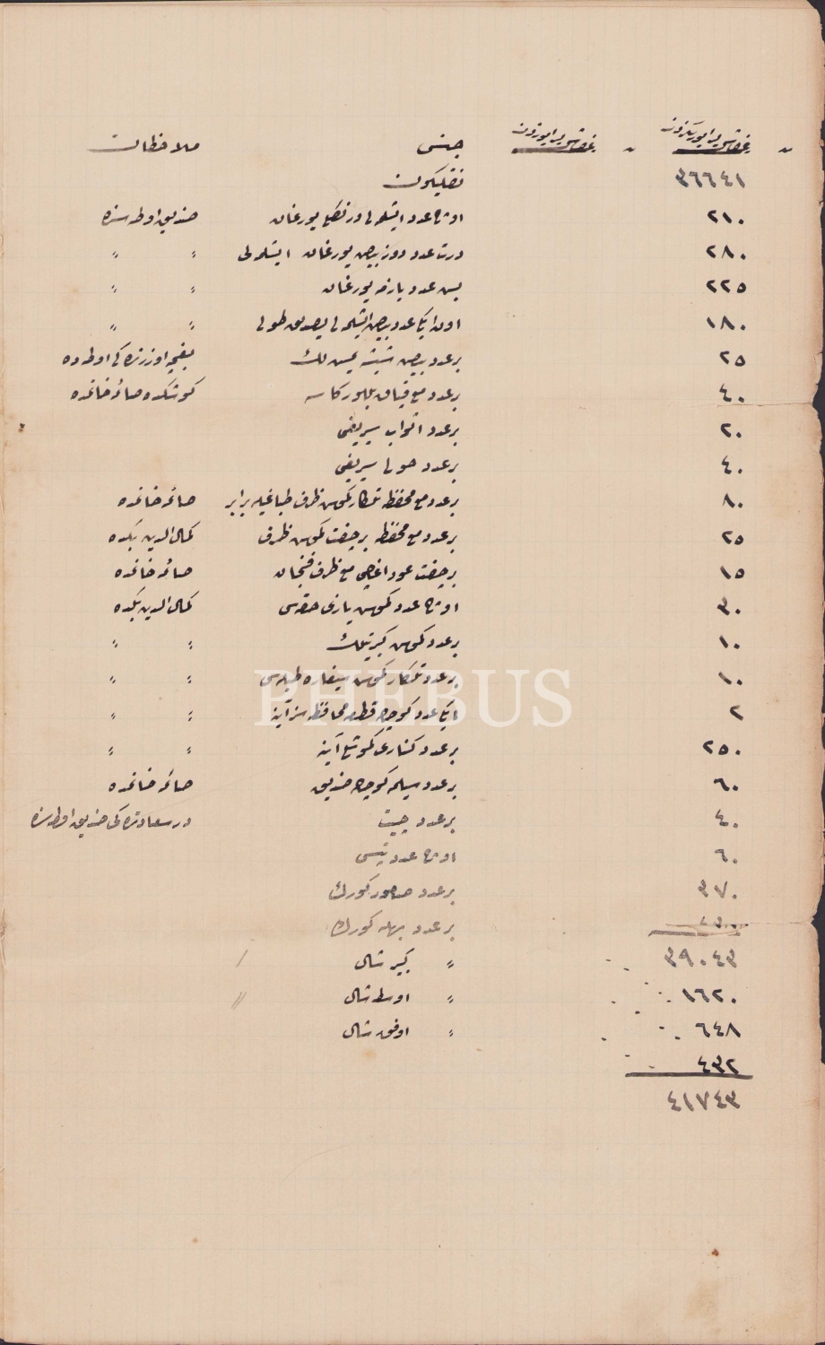 Bir köşkün odalarında yer alan malların listesi ve fiyat karşılıkları, 21x33 cm