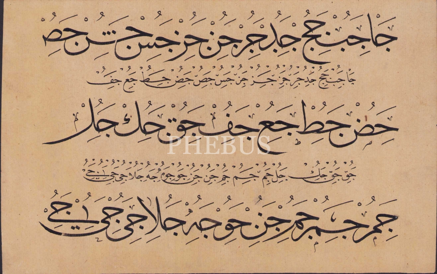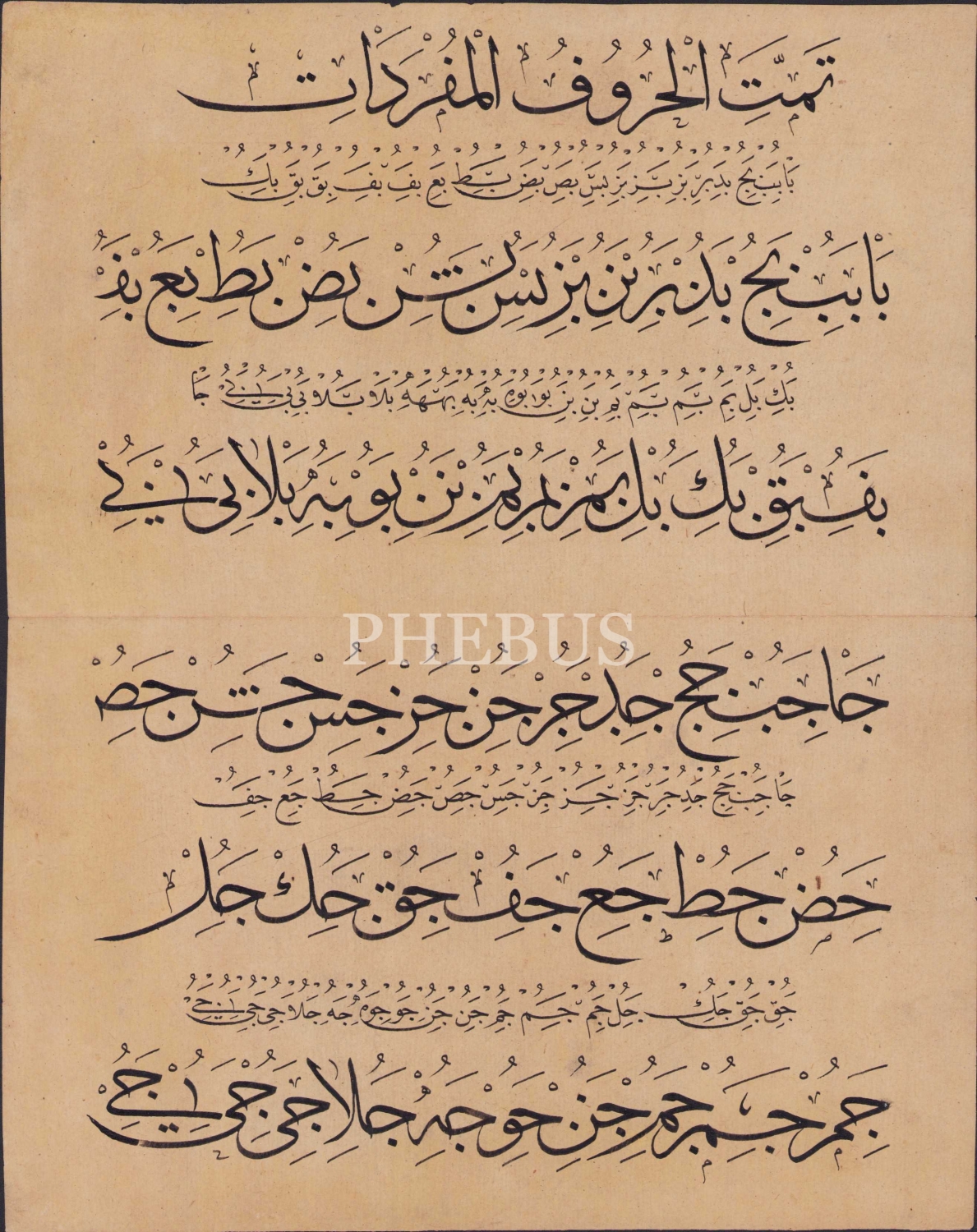 Hoca işi Sülüs Nesih Hurufat meşki, birleşik iki parça, 22x28 cm