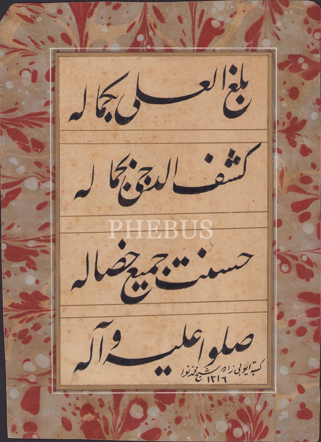 Celi Talik Kıta, Eyyubizade Şeyh Mehmed Neva ketebeli, 1316 tarihli, ebrulu, 14x23 cm