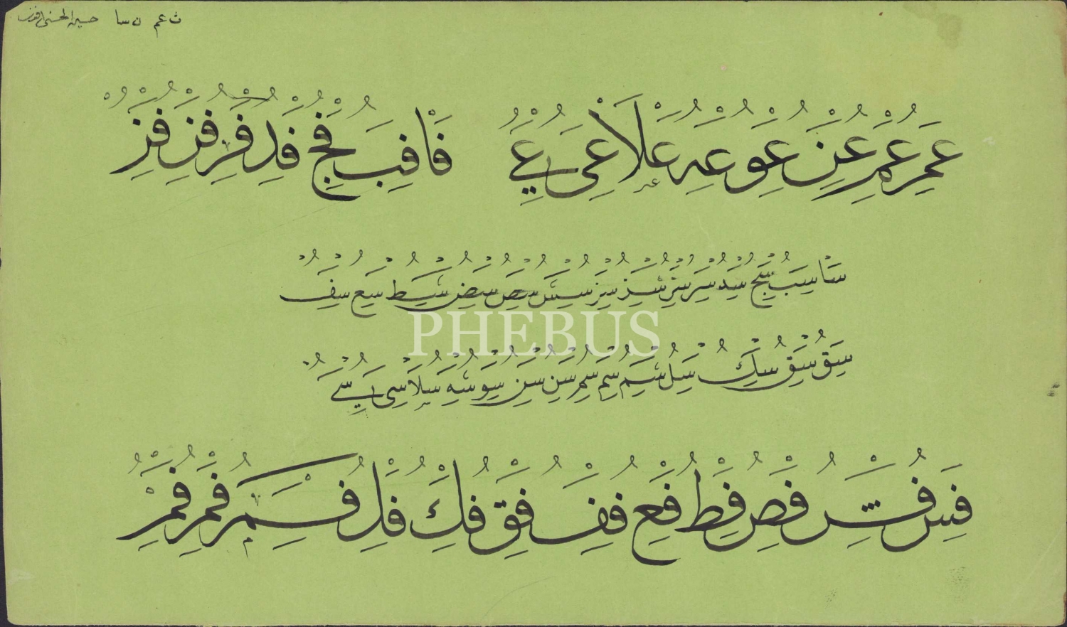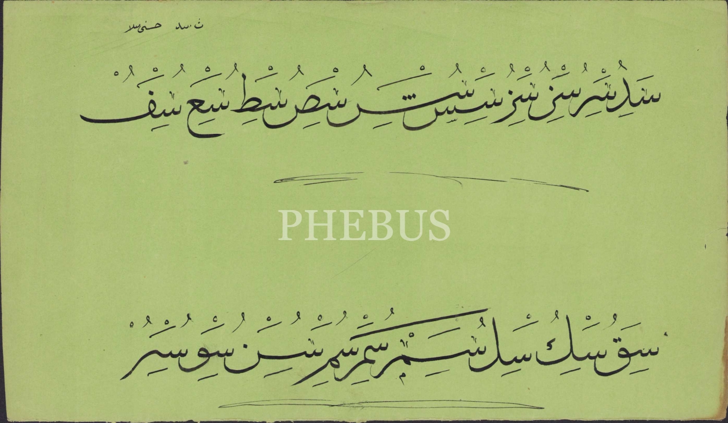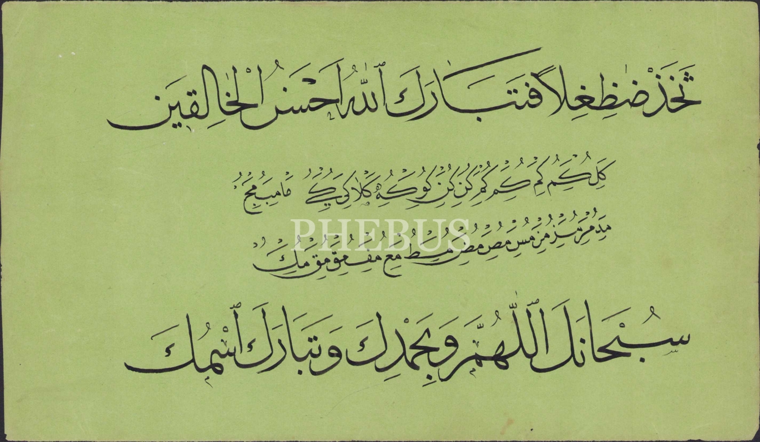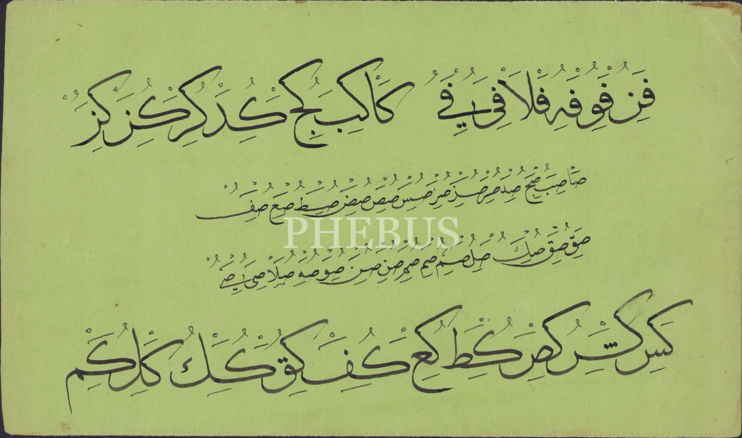 Sülüs Nesih Meşk Murakkaı, 13 parça, Hüsnü Molla notu mevcut, 22,5x13,5 cm