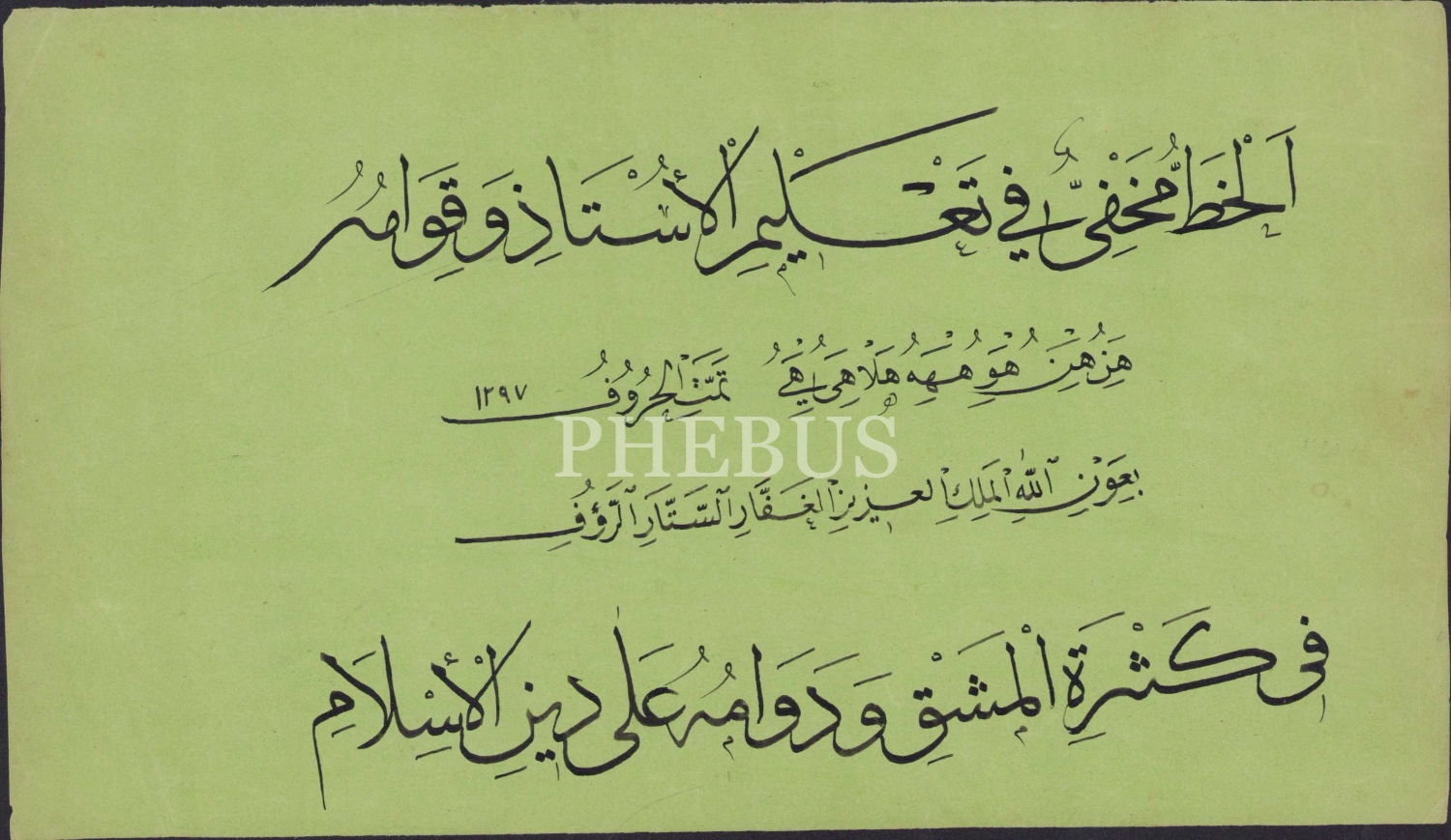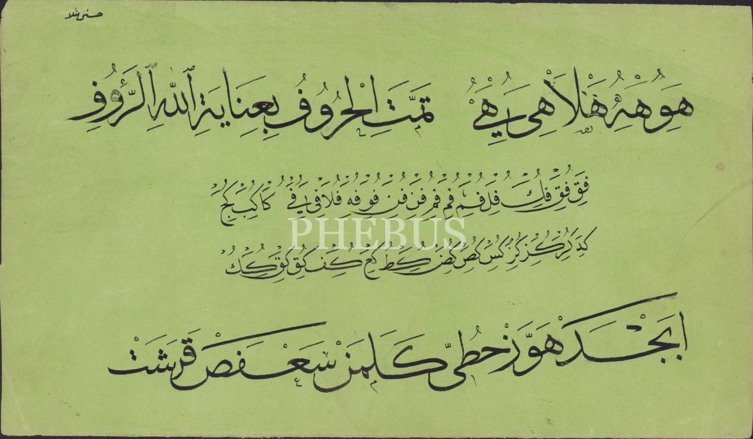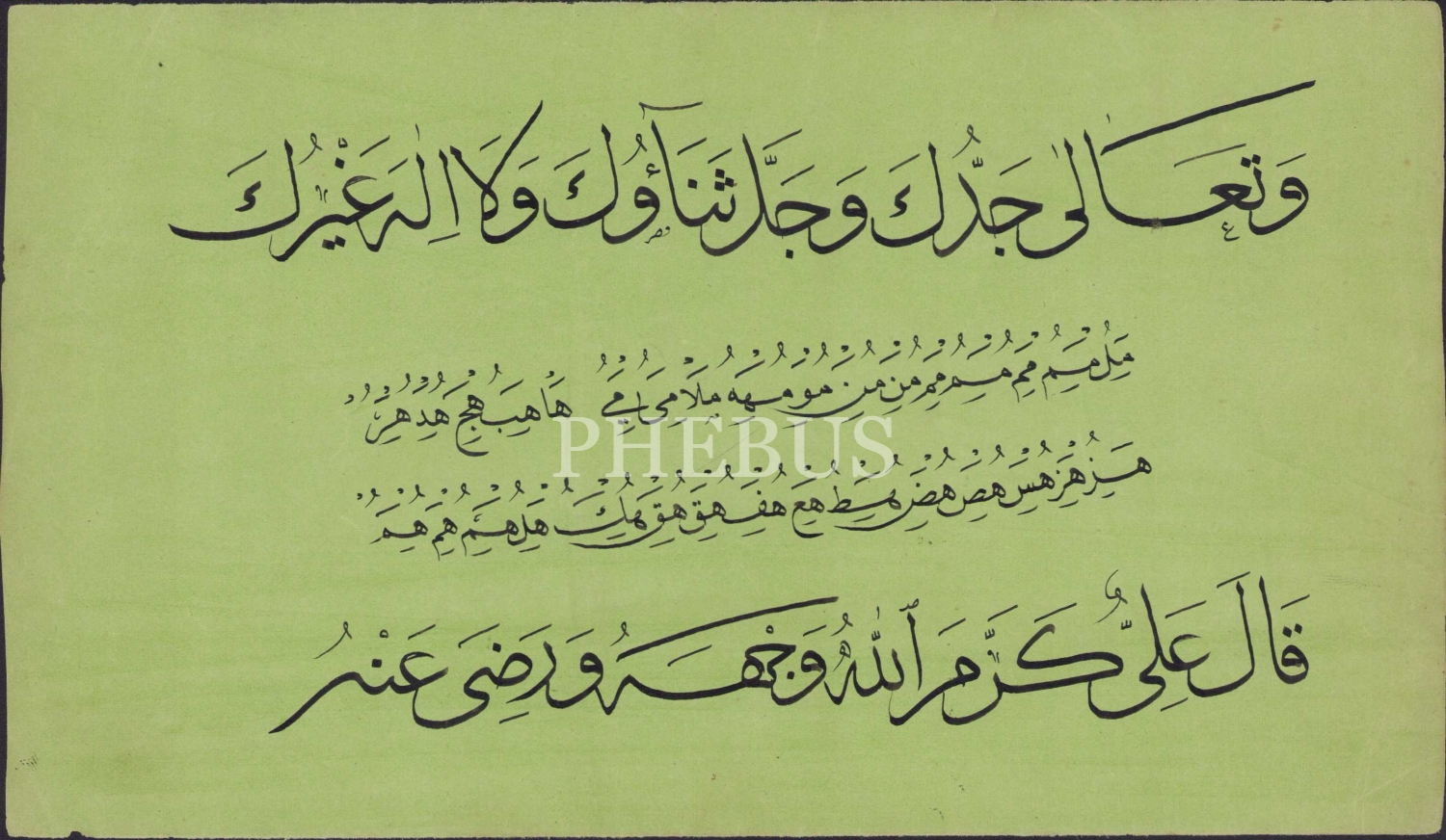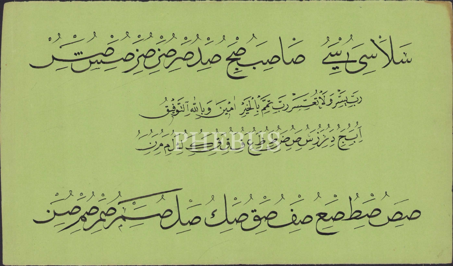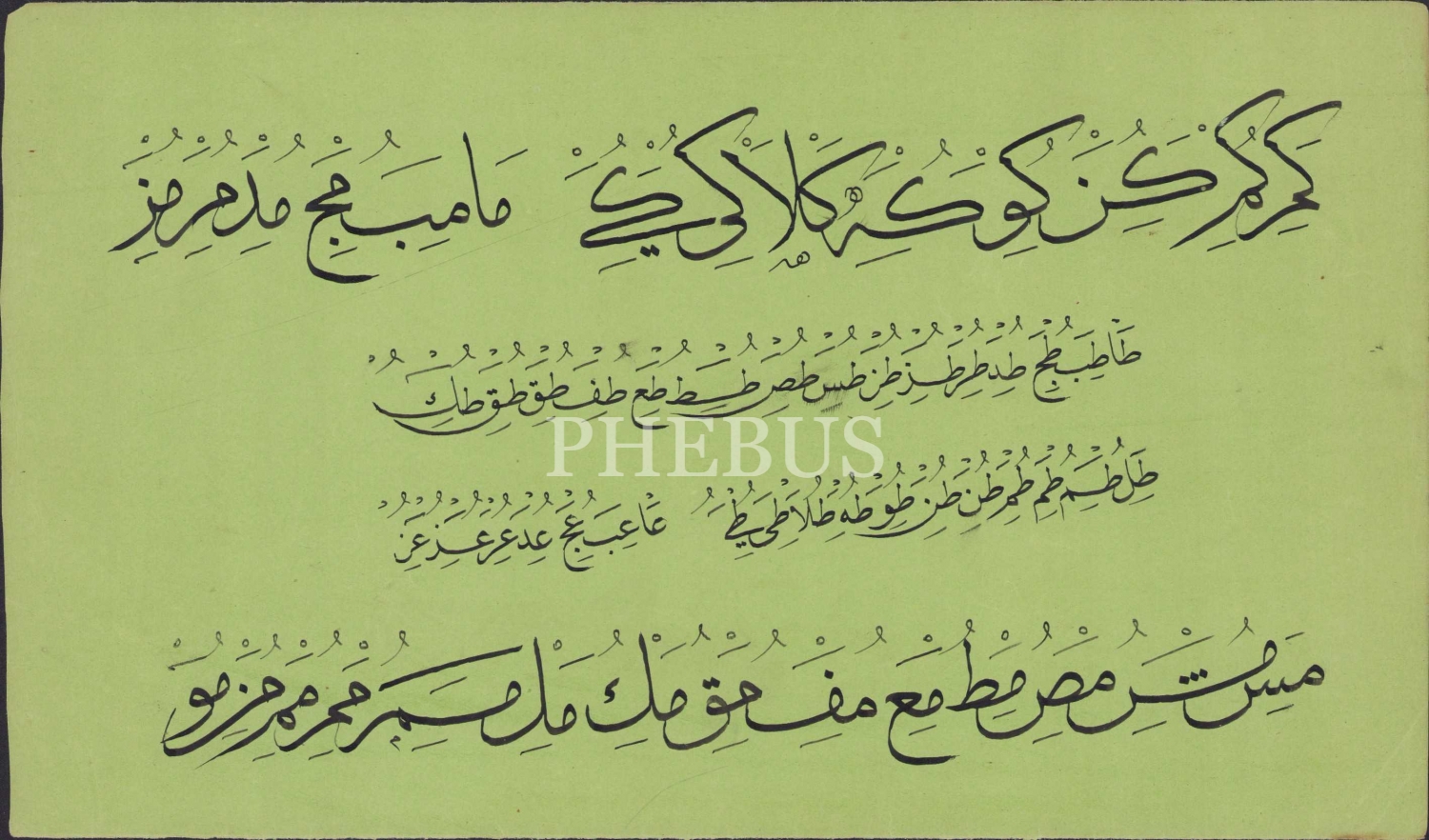Sülüs Nesih Meşk Murakkaı, 13 parça, Hüsnü Molla notu mevcut, 22,5x13,5 cm