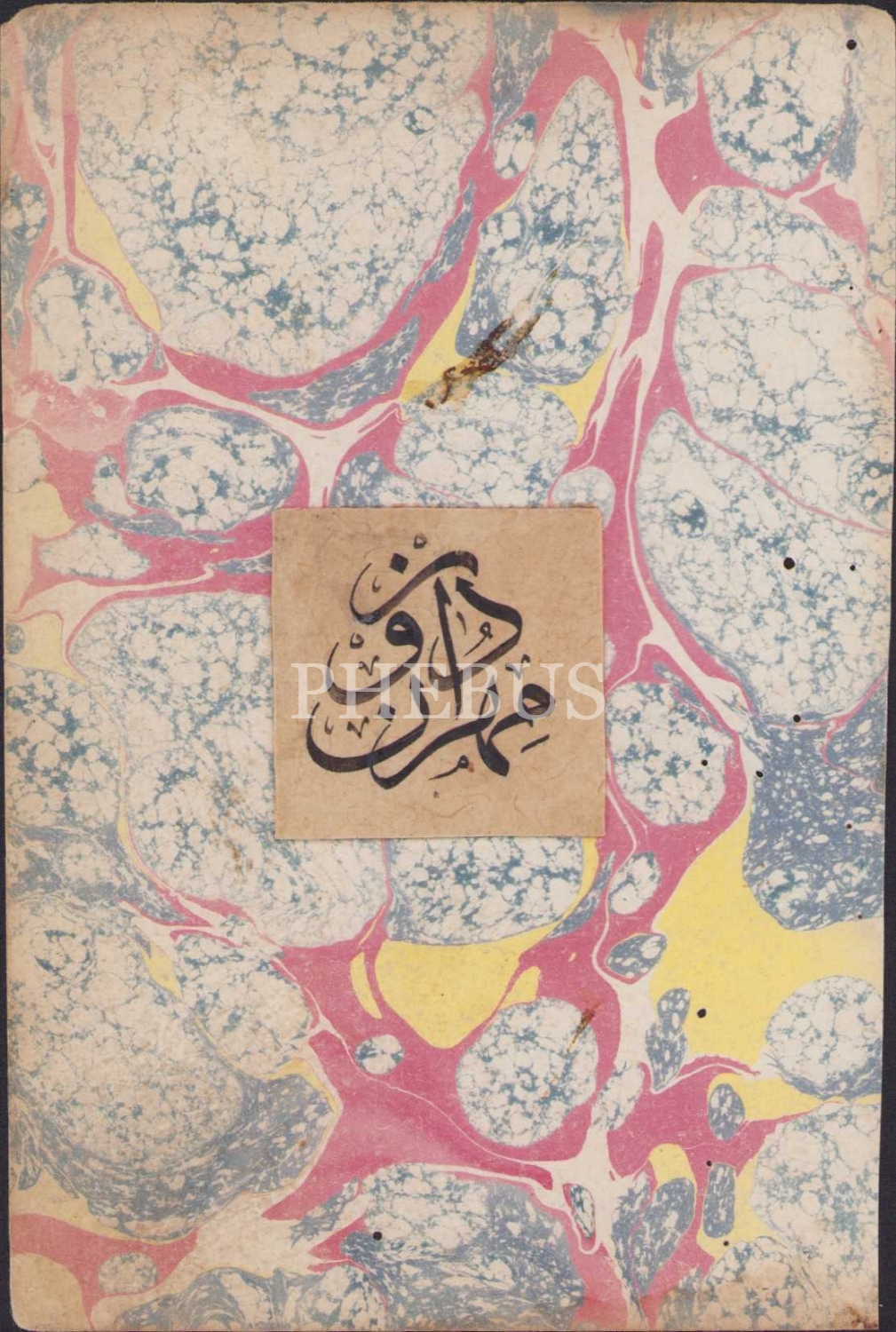 Sülüs yazı, "Mihran Düz[yan] adına düzenlenmiş istif, dönem ebrusu ile, 3,5x3,5 cm