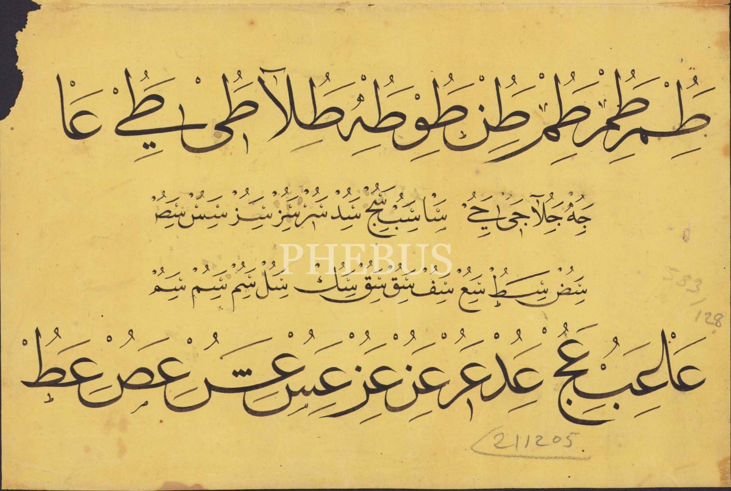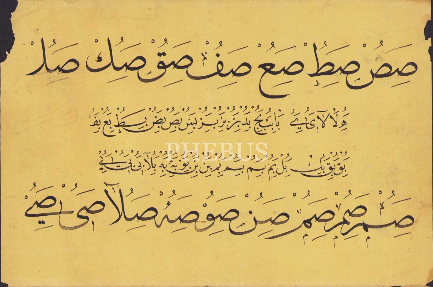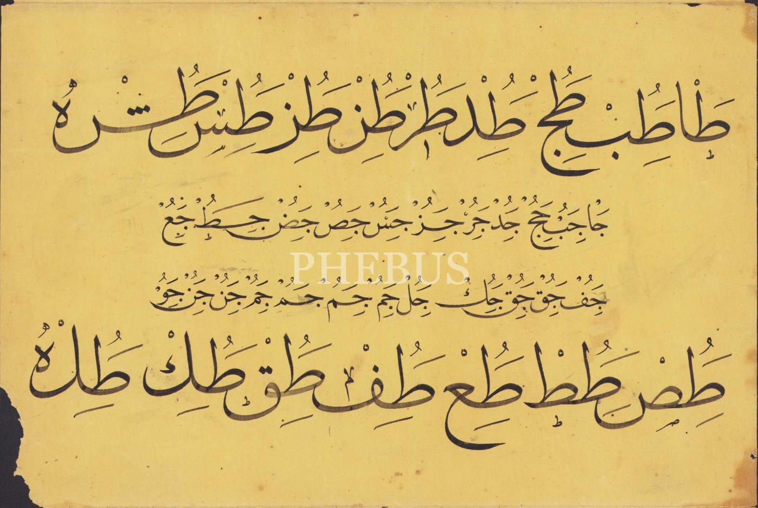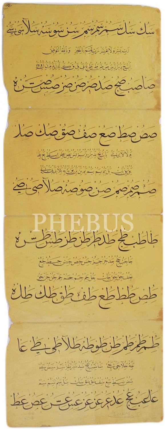 Sülüs Nesih Hurufat Meşki, birleşik halde 4 parça, 21,5x56 cm