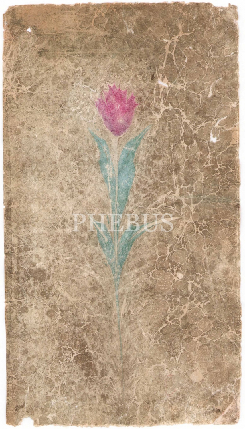 Hoca işi, eski dönem çiçekli ebru, 15x27 cm