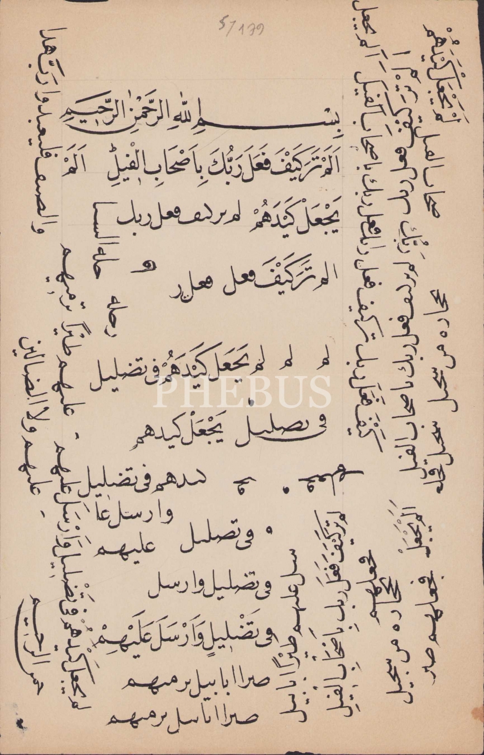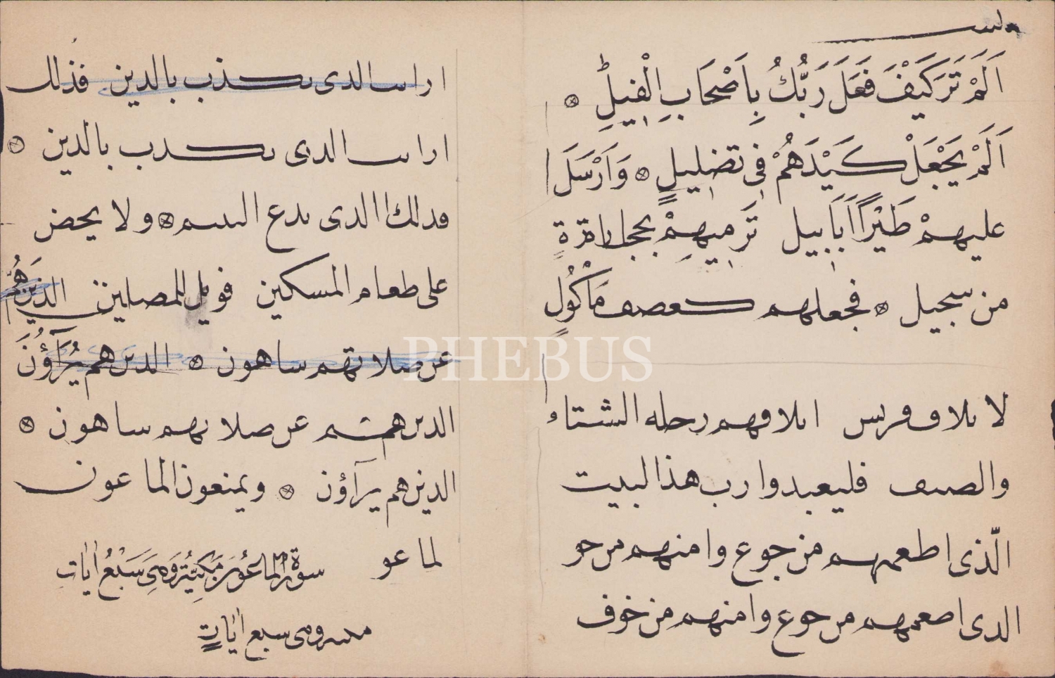 Nesih yazı çalışması, Fil ve Kureyş Sureleri, arkalı önlü, 23x14,5 cm