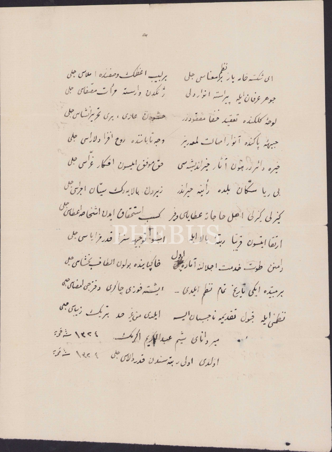 Kırma Talik şiir, 1324 tarihli, 21x28 cm