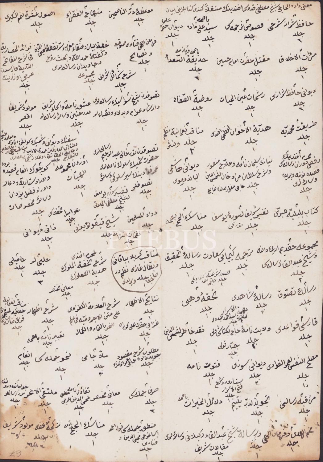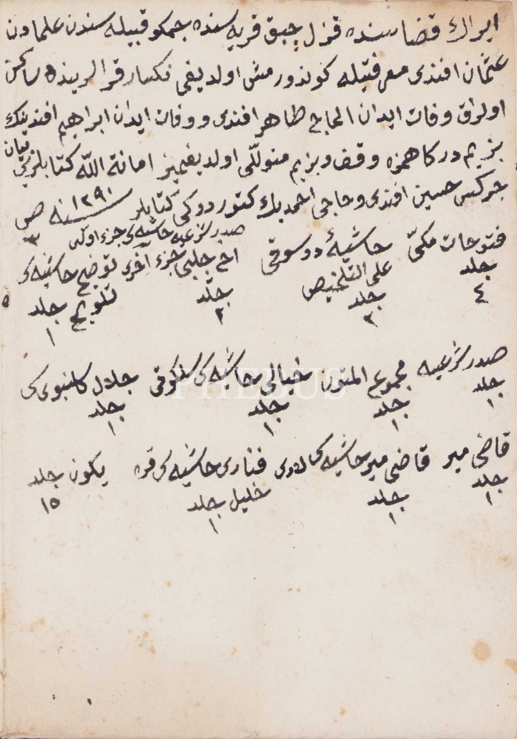 Müftüzade Eş-Şeyh Mustafa Kuddusi Efendi'nin emanetinde bulunan kitapların listesi, 1291 tarihli, 23,5x34 cm
