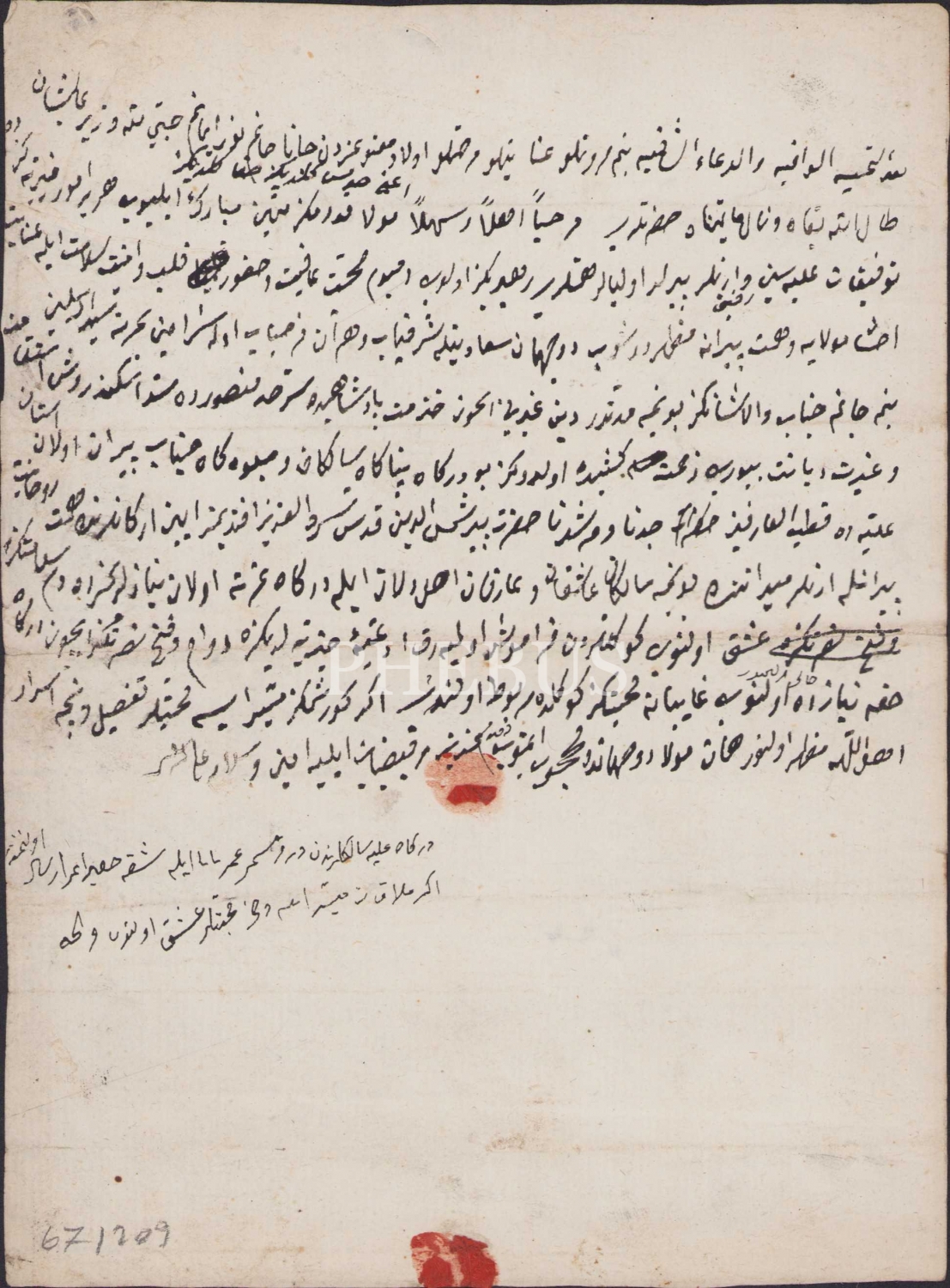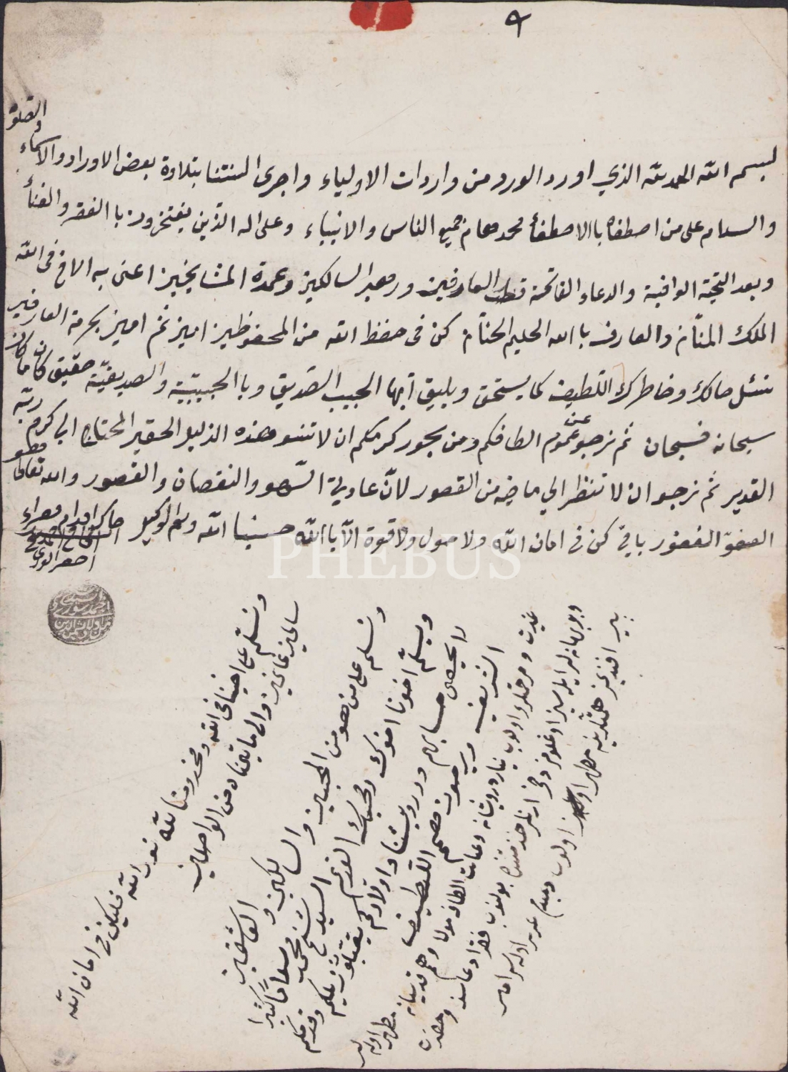 Eş-Şeyh Es-Seyyid Ahmed Evlad-ı Şemseddin damgalı Osmanlıca mektup, 2 sayfa, 16,5x22 cm