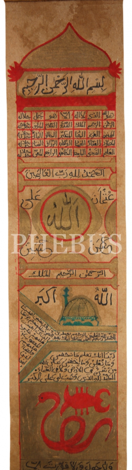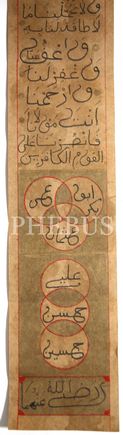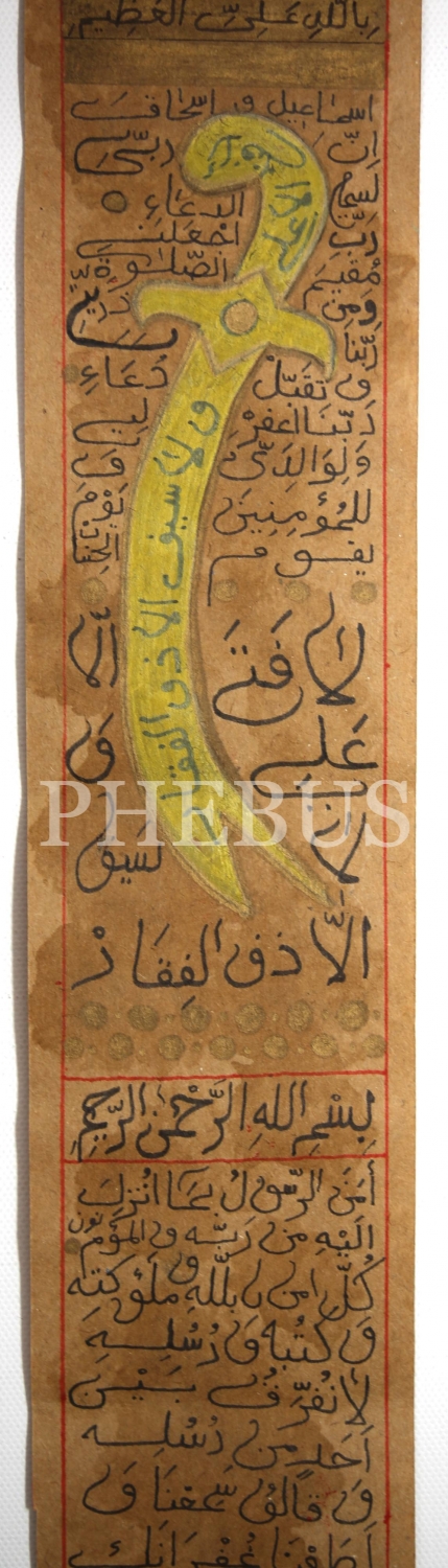 Esma-i Hüsna, Dört Halife isimleri yazılı, zülfikar ve cami görselli varaka, 6,5x92 cm