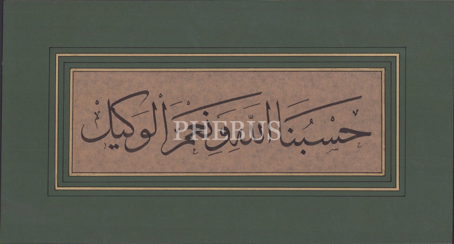 Celi Sülüs yazı, 'Hasbinallah ve ni'mel vekil', 25x8 cm