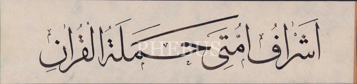 Sülüs yazı, 'Eşrafu Ümmeti Hameleti'l Kuran', 29x7 cm