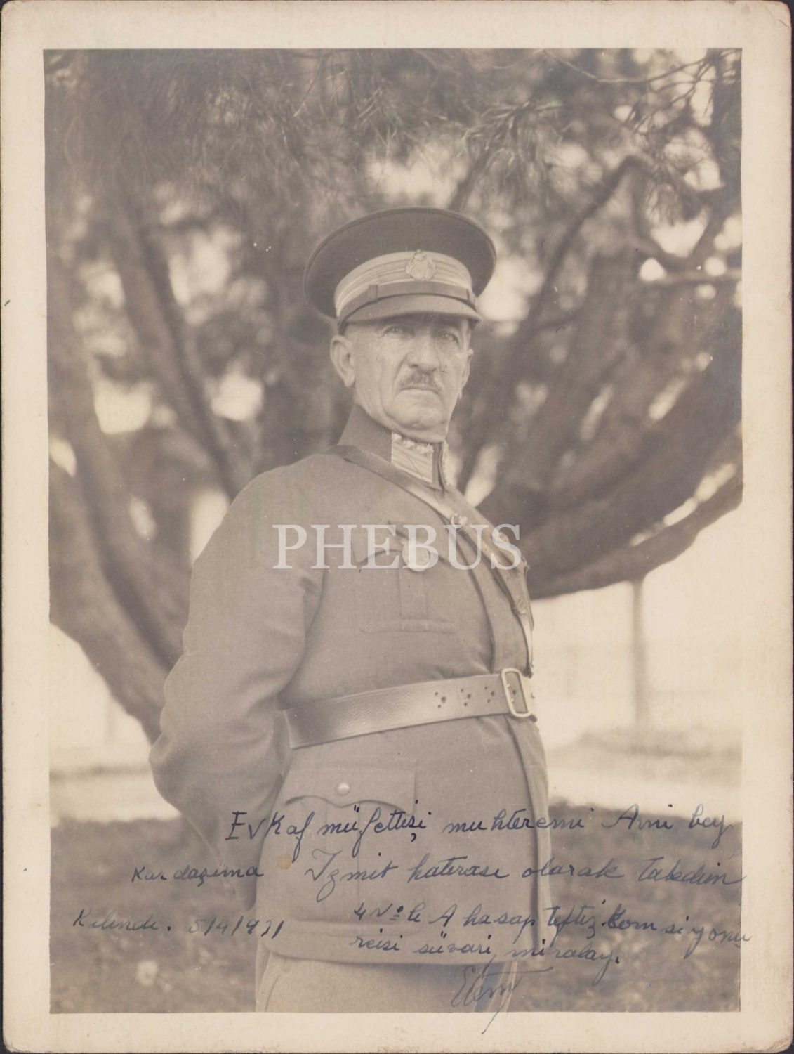 İzmit Teftiş Komisyonu Reisi Süvari Miralayı madalyalı Etem Bey, imzalı ve ithaflı, 18x24 cm.