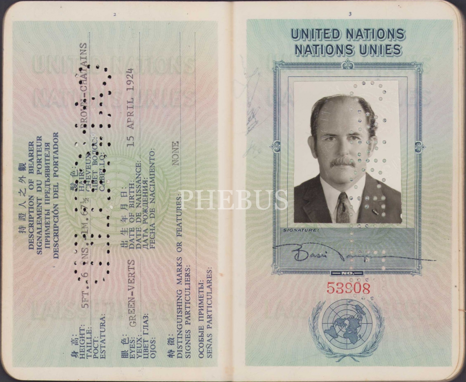 Hasan Basri Danışman'a ait pasaport, muhtelif ülkelerden damgalı, 60 sayfa, 9,5x15 cm.
