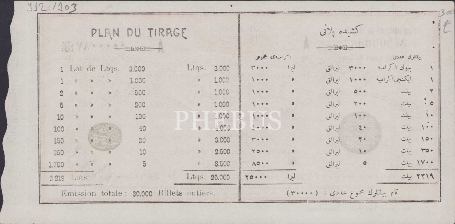 Kandilli İnas Mekteb-i Sultani Piyango, Matbaa-i Ahmed İhsan ve Şürekası, Osmanlıca, 22x11 cm.