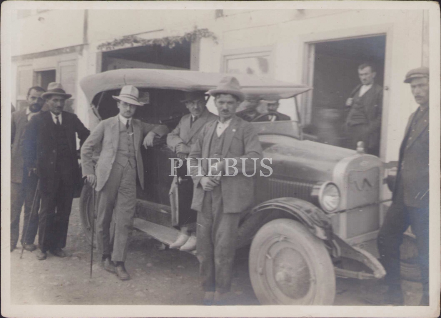 Erken dönem şapkalı tipler ve otomobil, 18x13 cm.