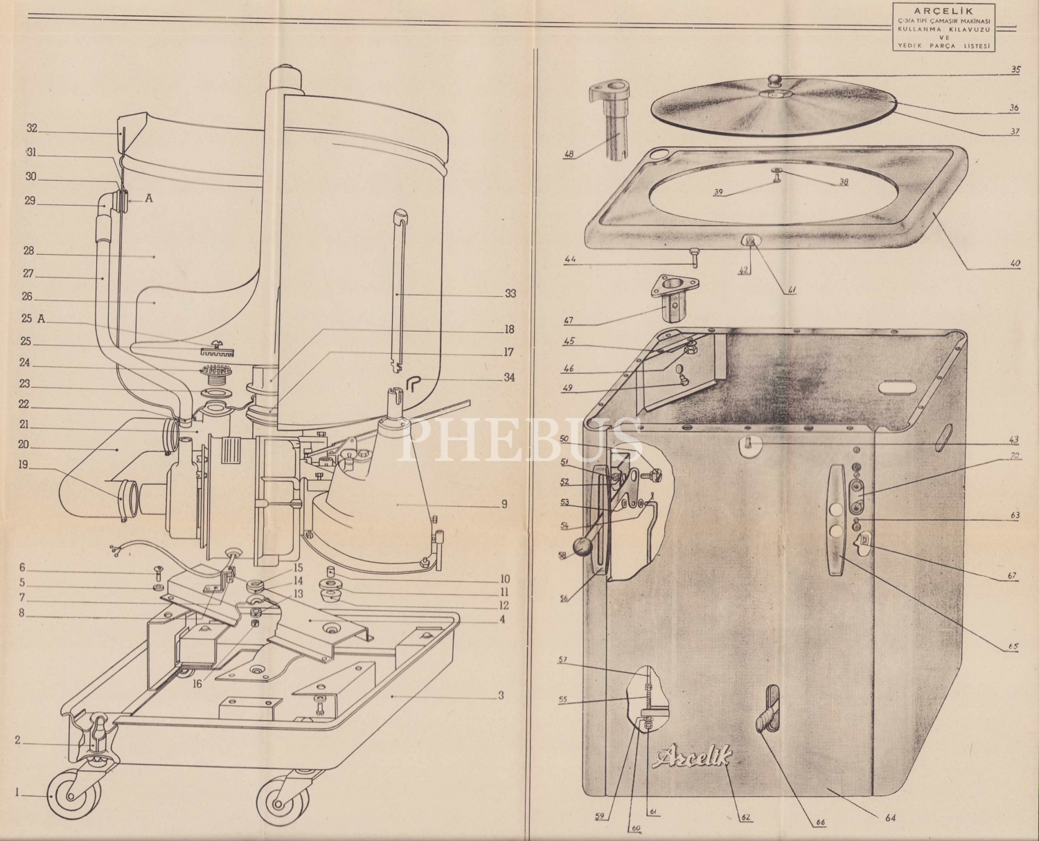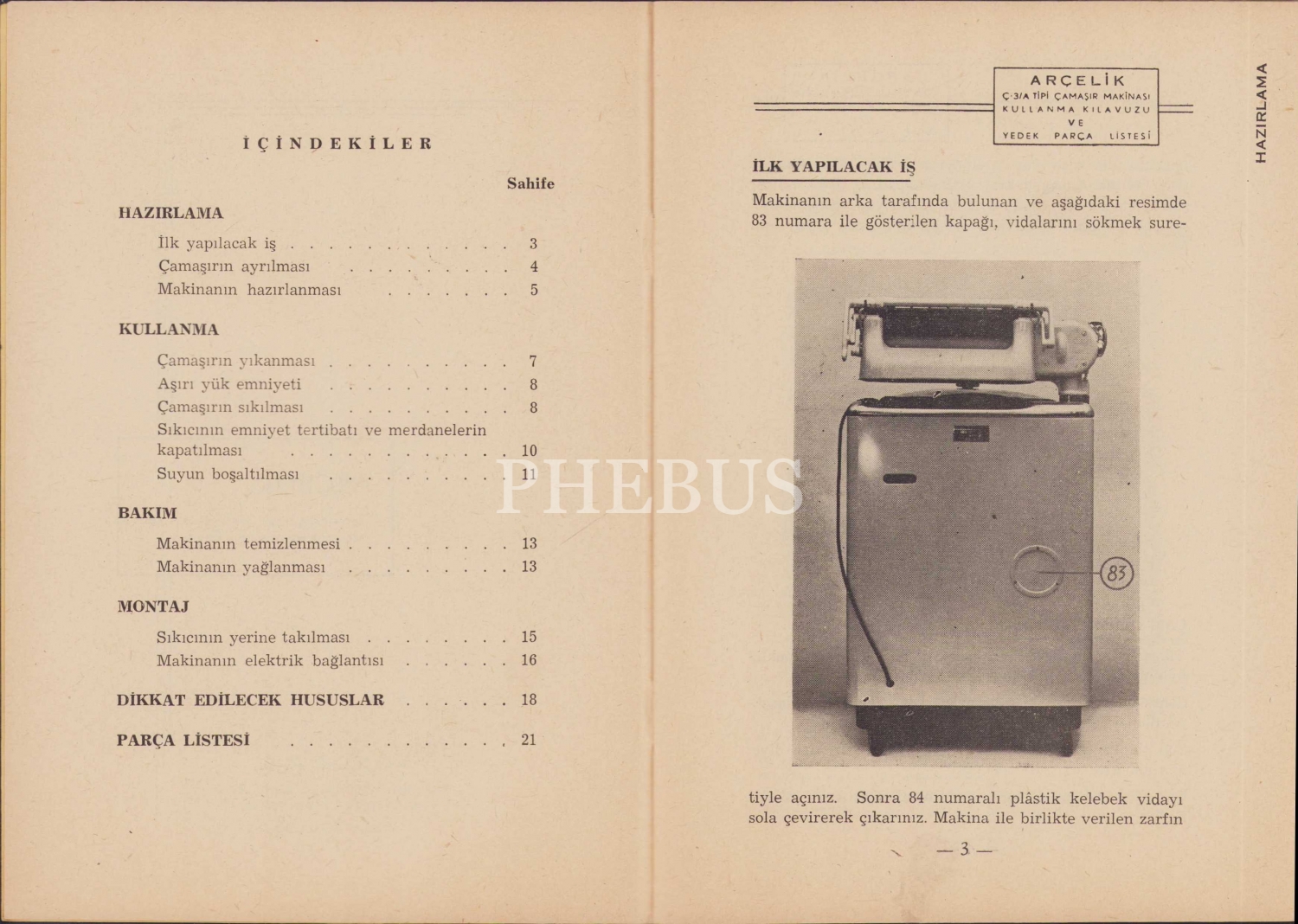 Arçelik Ç3-A Tipi Çamaşır Makinası Kullanma Kılavuzu ve Yedek Parça Listesi, 23 sayfa, 15x21 cm.