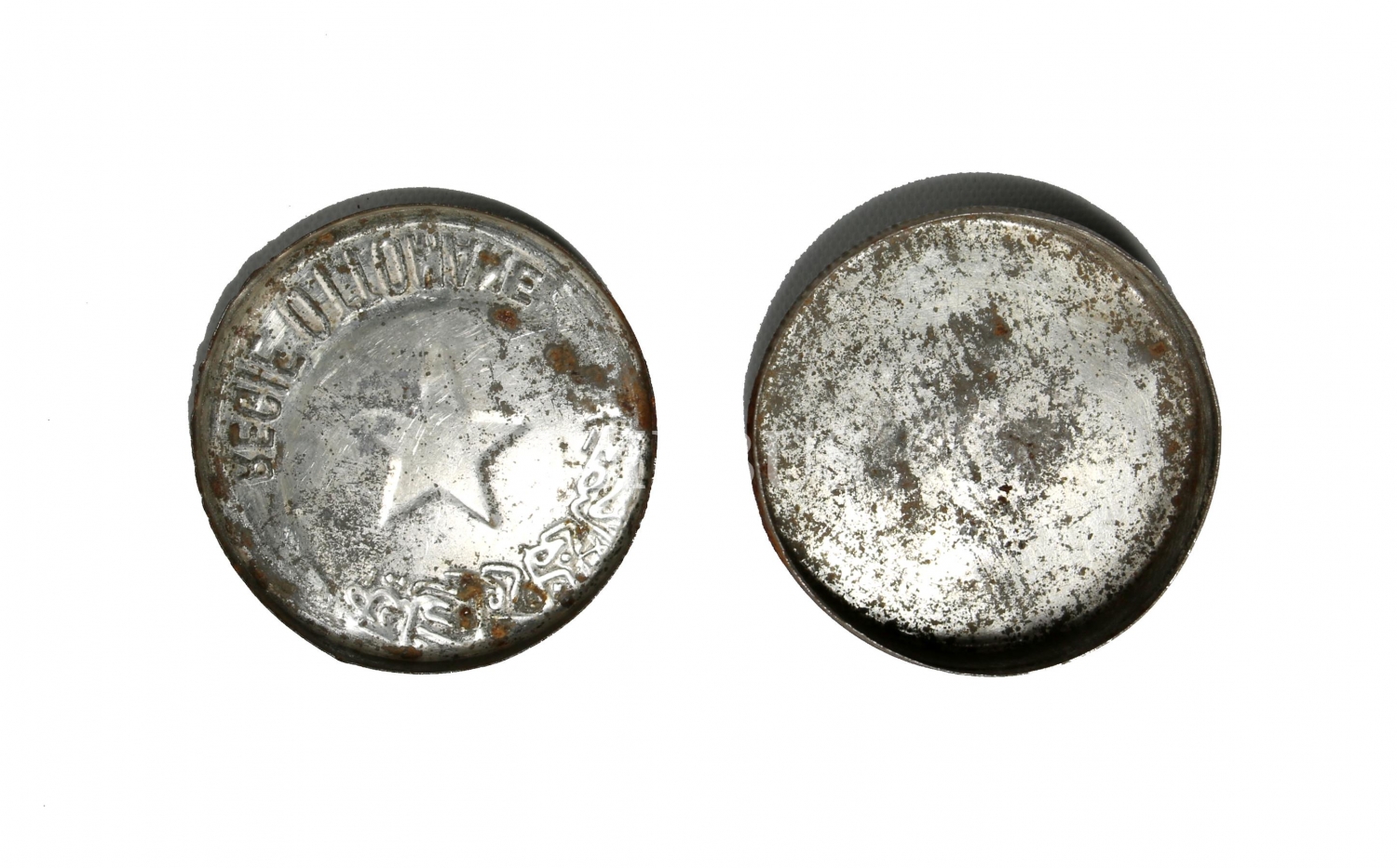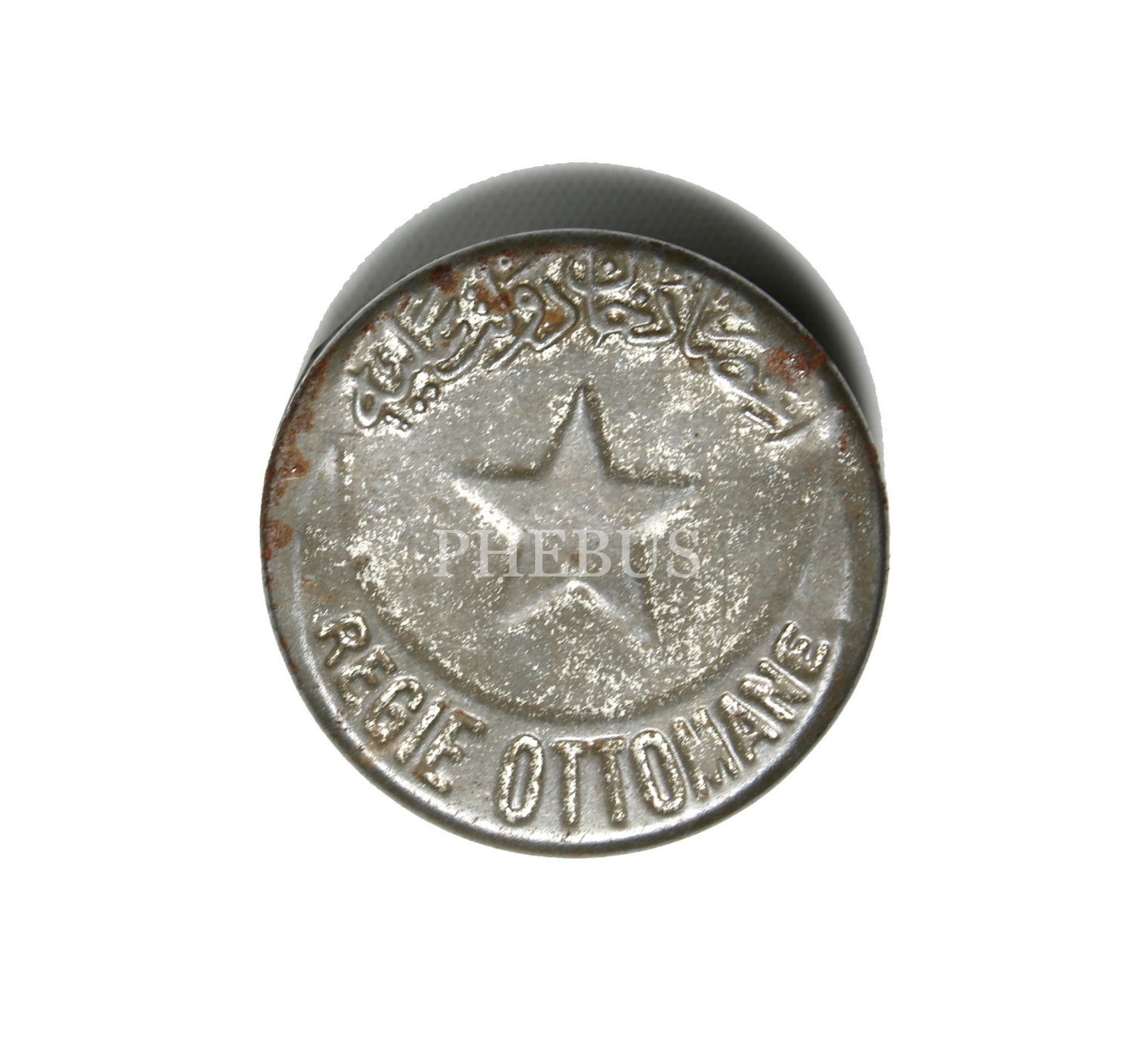 REGIE OTTOMANE, Osmanlıca Fransızca yazılı teneke tütün kutusu, 5x2 cm