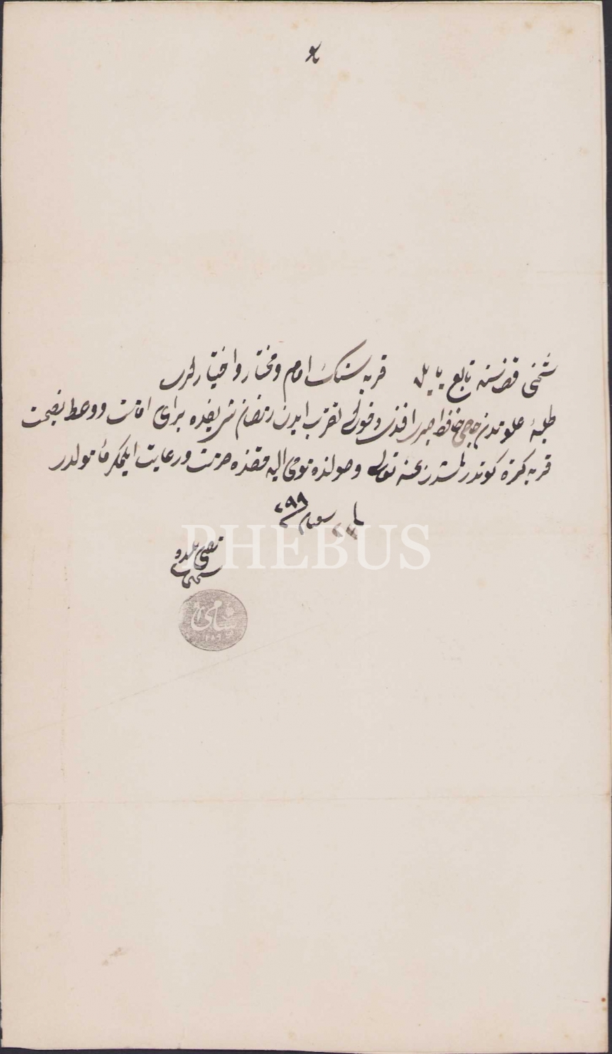 Şumnu Kazası Yayla Karyesi'nde bir amamın Ramazan-ı Şerif dolayısıyla vazifelendirildiğine dair belde müftüsü damgalı belge, 12x21 cm.