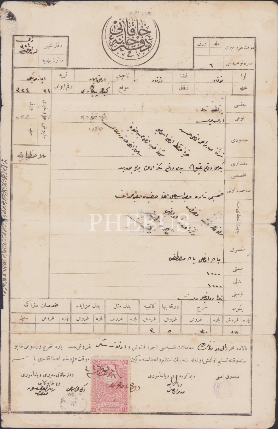 Defter-i Hakani antetli Tokat livası tarla tapusu, Osmanlıca, 1324 tarihli, 18x28 cm.