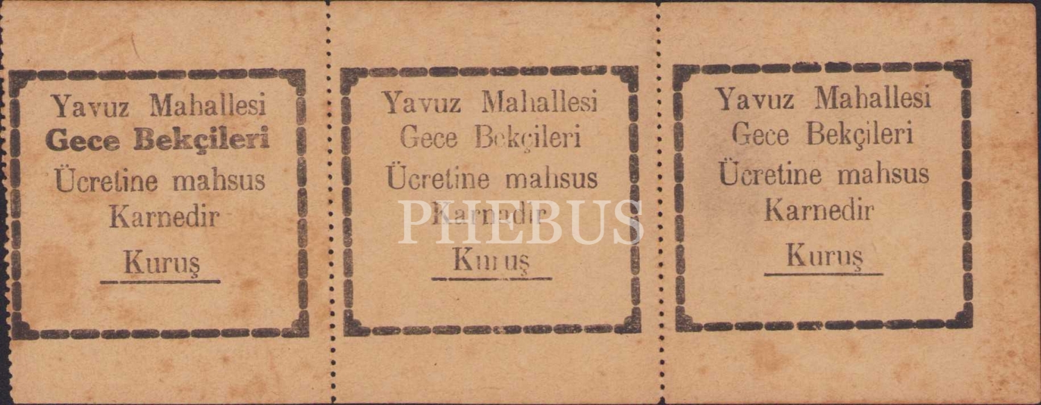 Yavuz Mahallesi Gece Bekçileri Ücretine Mahsus Karne, üç adet, 5x6 cm.