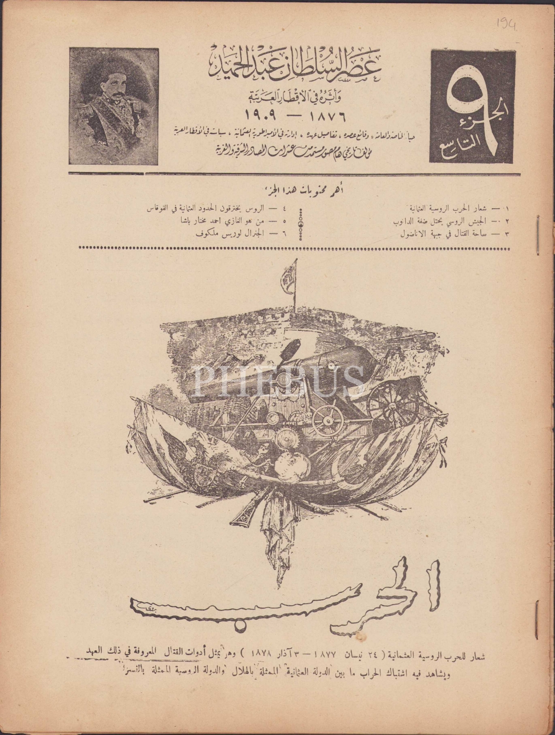 Arapça Es-Seyyid Abdü'l-Hamid Es Sani Mecmuası, 1909 tarihli, resimli mecmua, ön kapak yok, 32 sayfa, 23x30 cm.