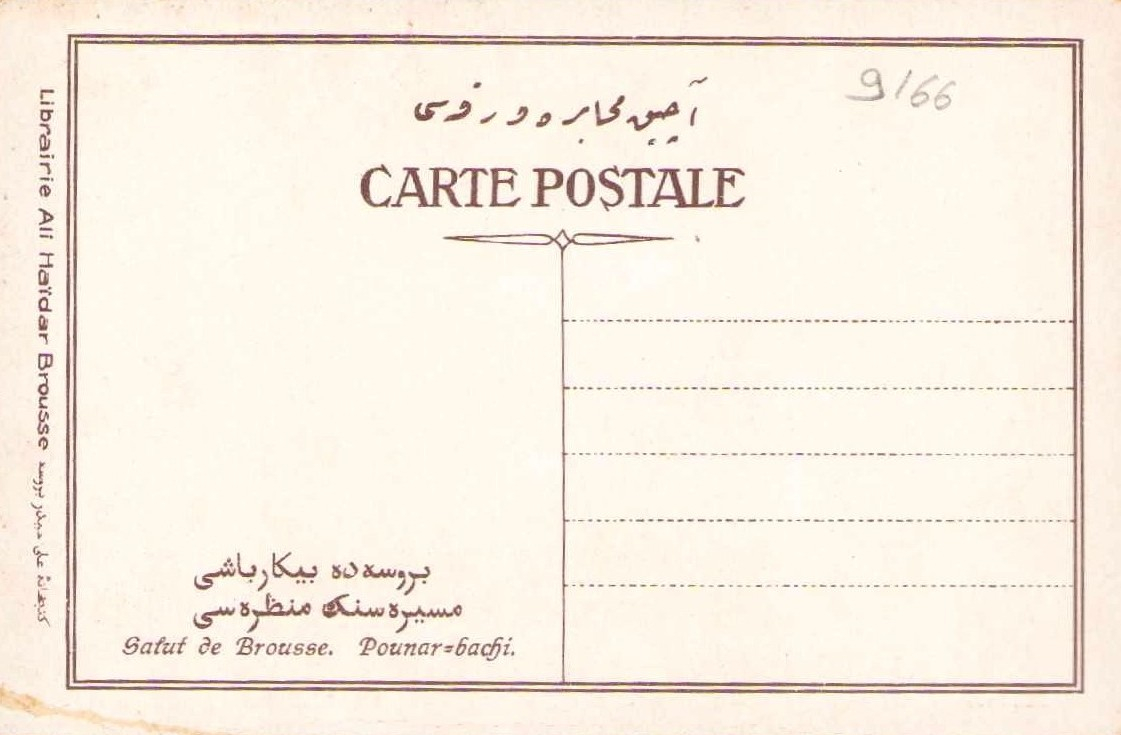 Bursa Pınarbaşı mesire manzaralı, Bursa Ali Haydar Kütüphanesi,Fransızca-Osmanlıca