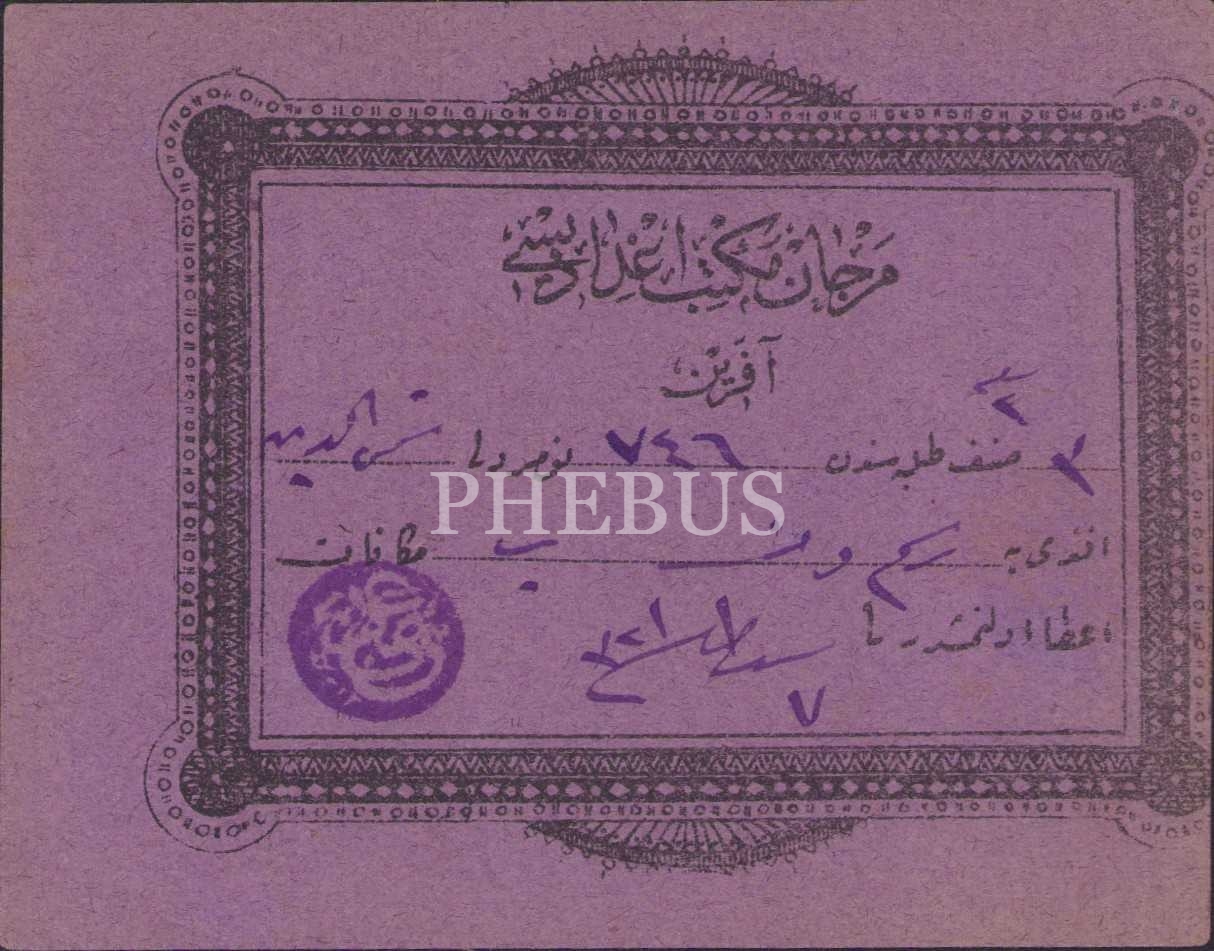 Mercan Mekteb-i İdadisi Aferin Belgesi, Şemseddin Efendi'ye ait, 1321 tarihli, 10x8 cm.