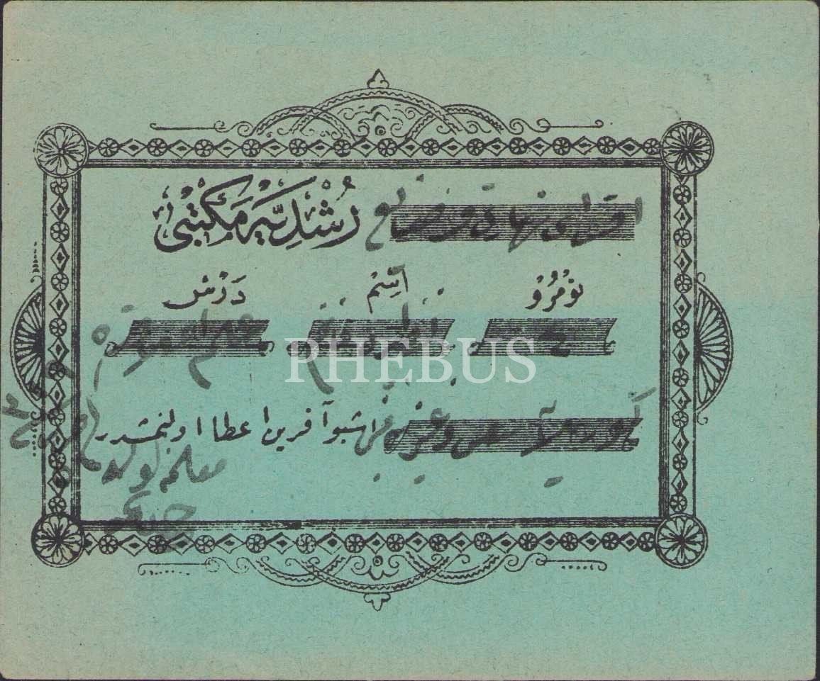 Aksaray Rüşdiye Mektebi Aferin Belgesi, Nazire Hanım'a ait, 1319 tarihli, 9,5x8 cm.