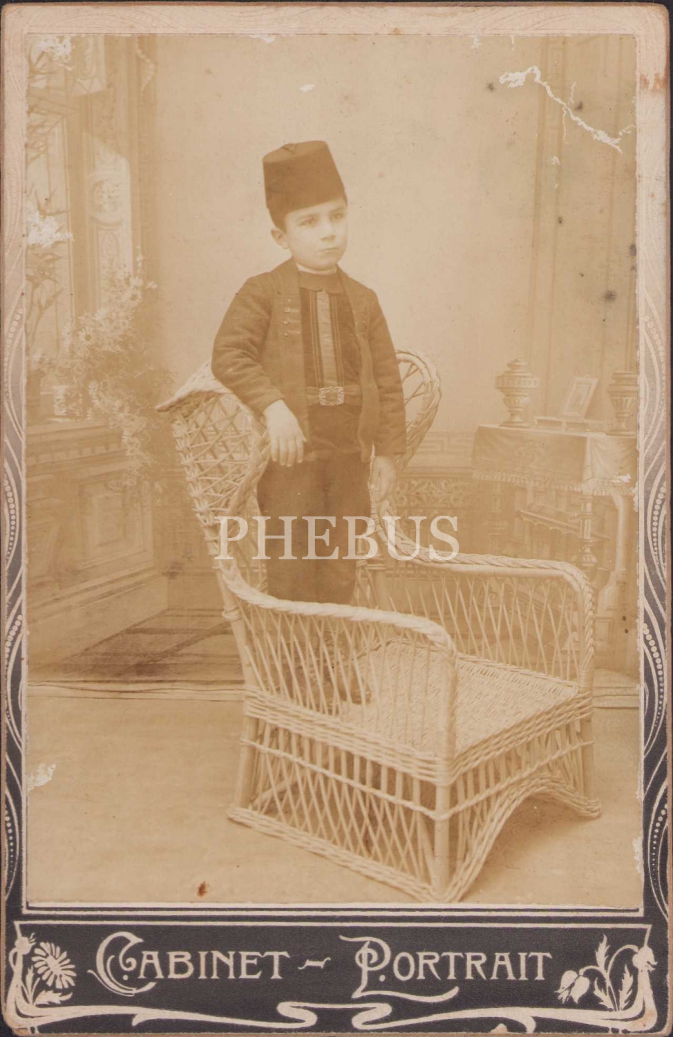 1324 tarihli fesli çocuk kabin fotoğrafı, arkası Osmanlıca, 10x16,5 cm.