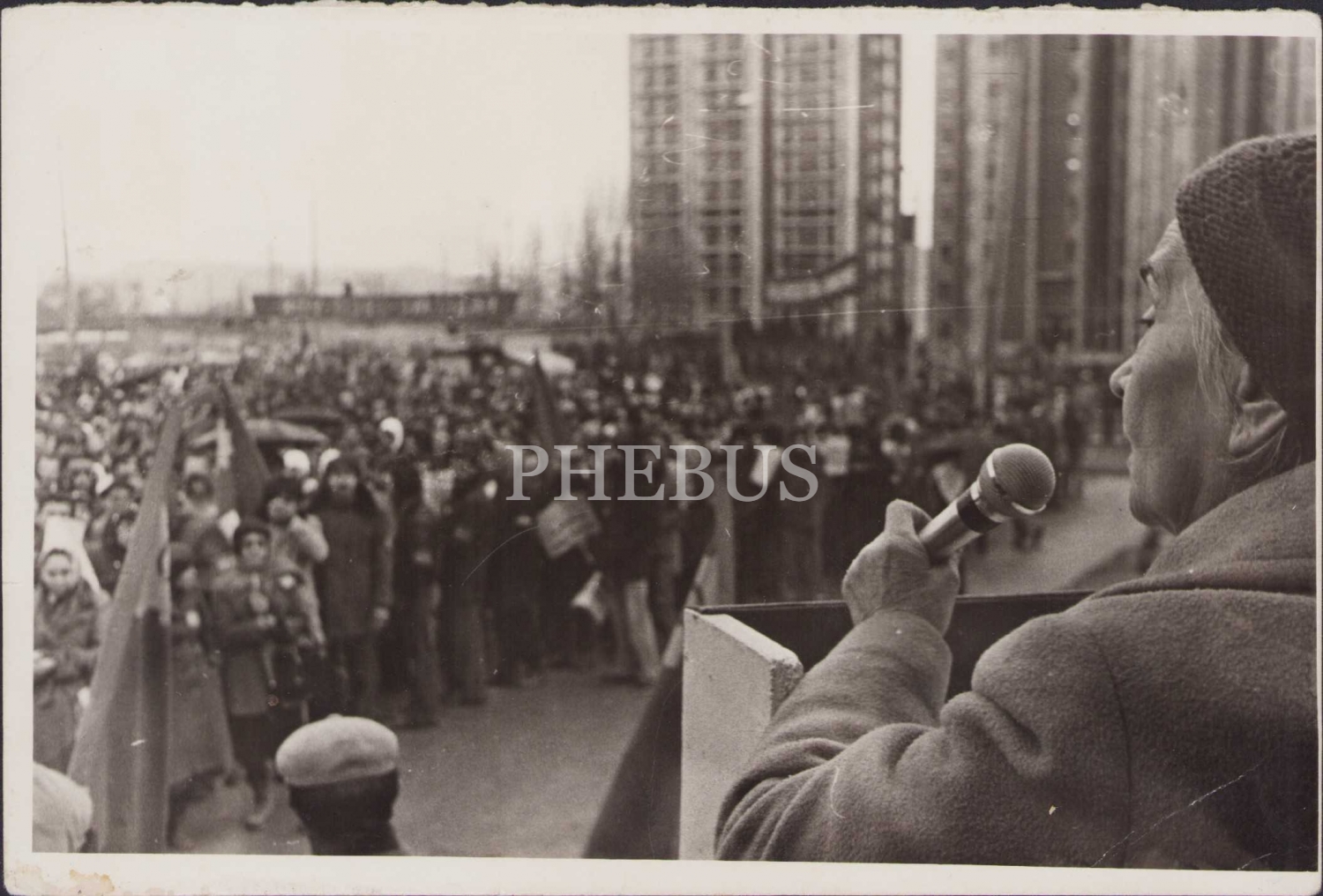 Behice Boran miting konuşması yaparken, 18x12 cm.