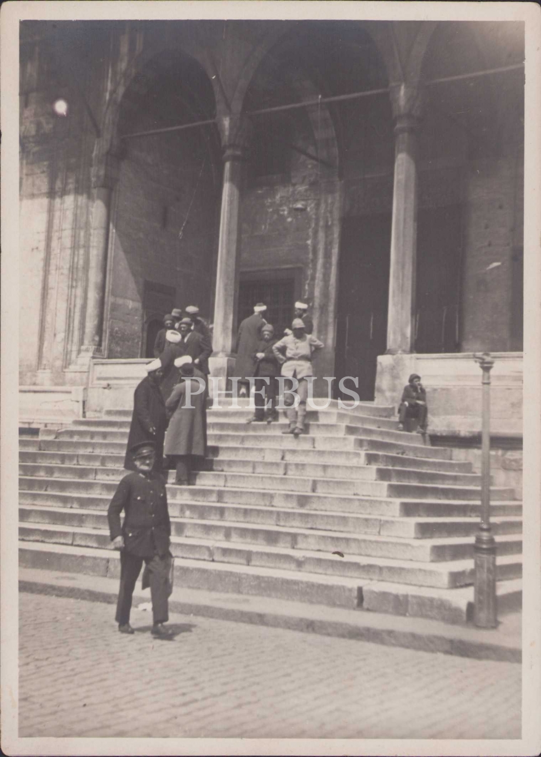 Camii girişinde sarıklı tipler, sosyal yaşam, 12,5x17,5 cm.