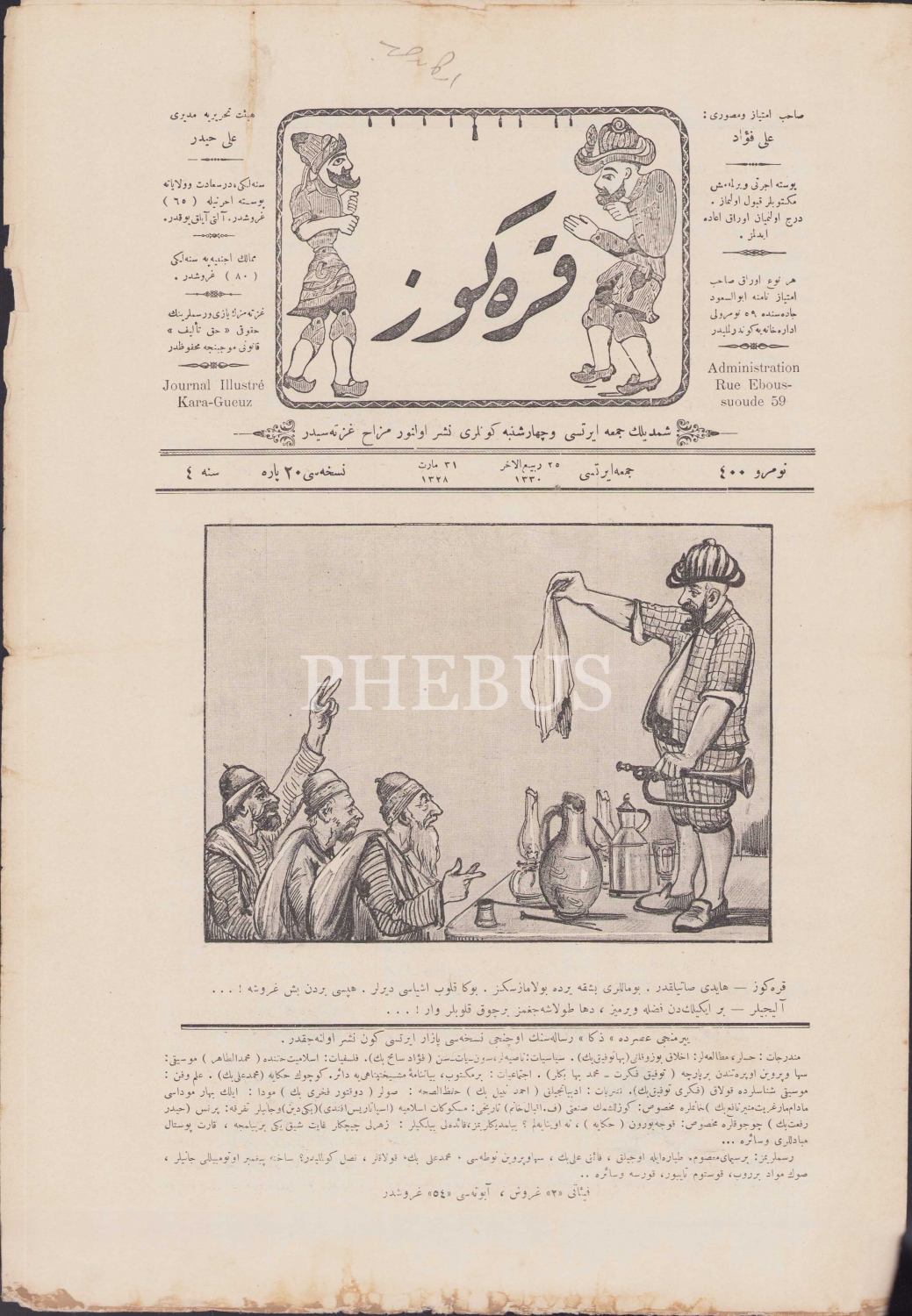 Osmanlıca Karagöz Mecmuası, Sene: 3, 21 Mart 1328 tarihli, Numara 400, 4 sayfa, 28x41 cm.