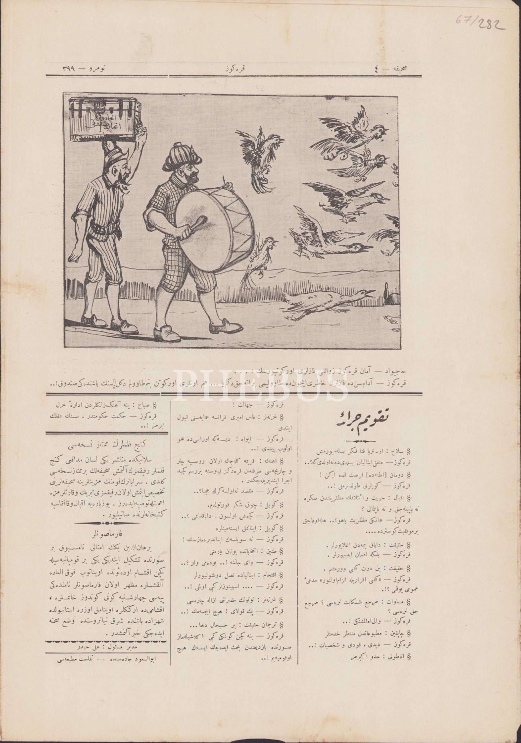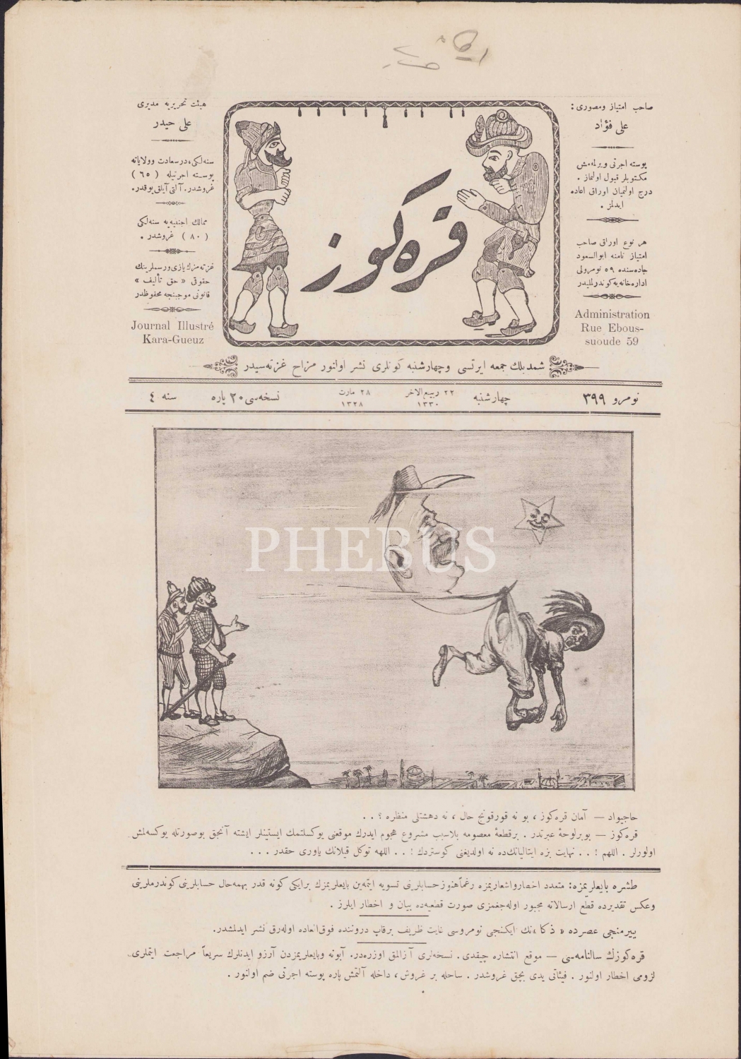 Osmanlıca Karagöz Mecmuası, Sene: 3, 28 Mart 1328 tarihli, 399 Numara, 4 sayfa, 28x41 cm.