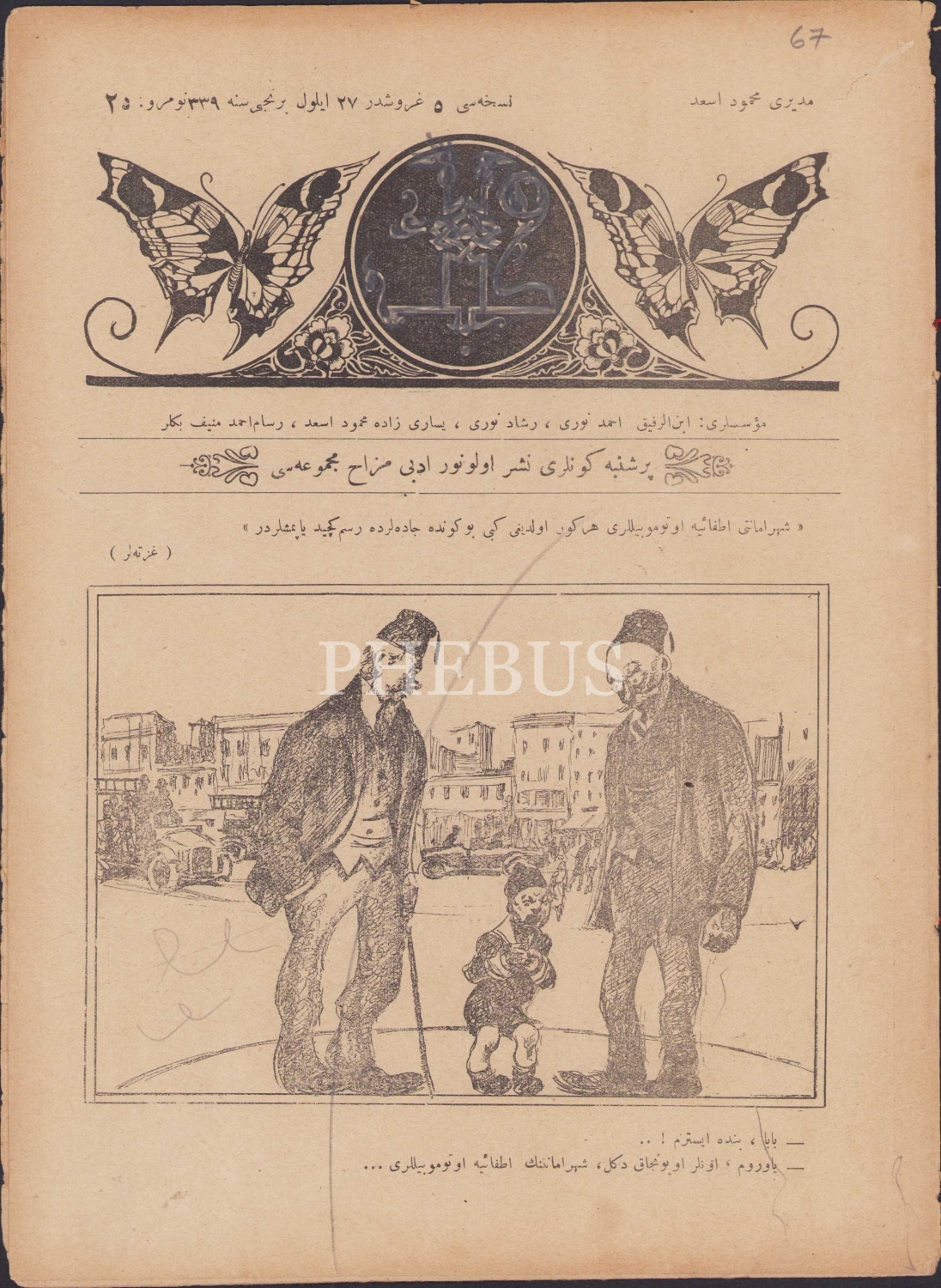 Osmanlıca Kelebek Mecmuası, Müdür: Mehmed Esad, 28 Eylül 1339 tarihli, Numara: 25, 16 sayfa, kapak karalanmış halde, 19,5x27 cm.