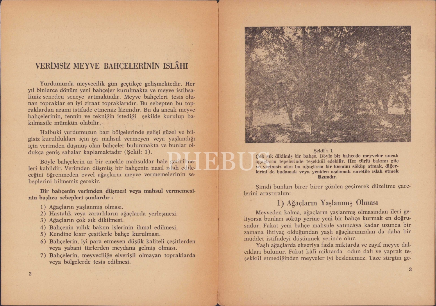 Verimsiz Meyve Bahçelerinin Islahı, Tarım Bakanlığı Çifti Broşürleri Serisi, 20 sayfa, 16x23 cm.