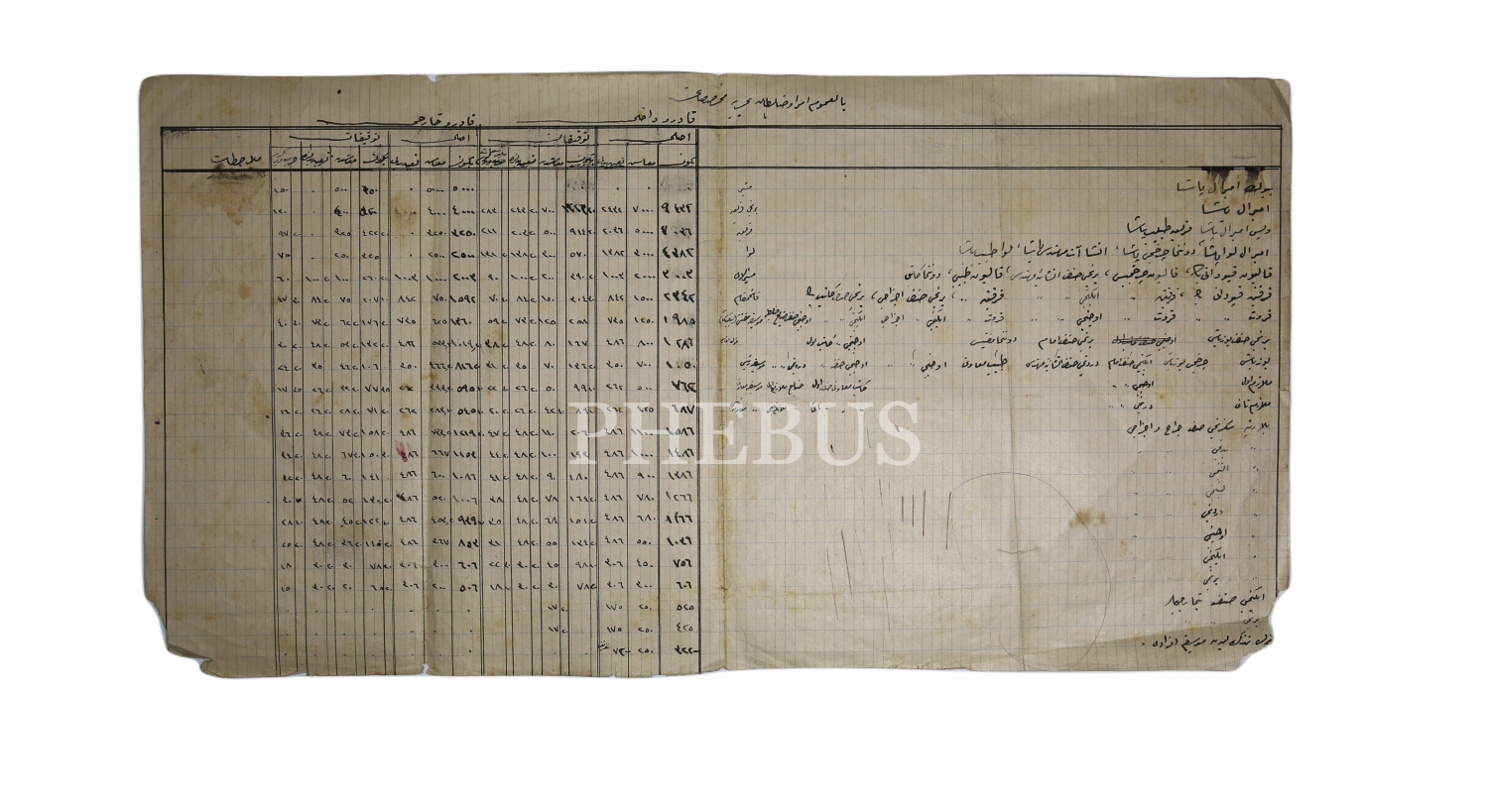 Paşa ve Zabitan-ı Bahriyye'ye Mahsus Osmanlıca maaş cedveli, 46,5x24 cm.