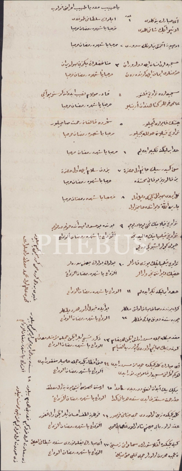 Ramazan Ayı dolayısıyla yazılmış Osmanlıca manzum metin, 1321 tarihli, arkalı önlü, 16x40 cm.