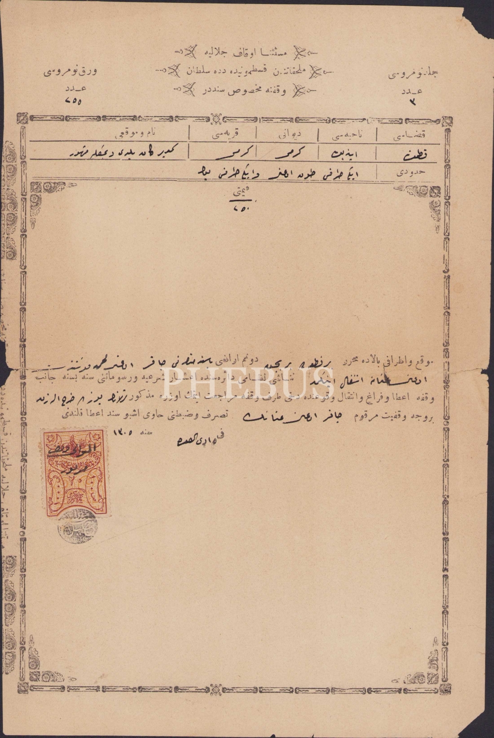 Kastamonu'da Dede Sultan Vakfı'na Mahsus Sened, Osmanlıca, damgalı ve pullu, 17x27 cm.